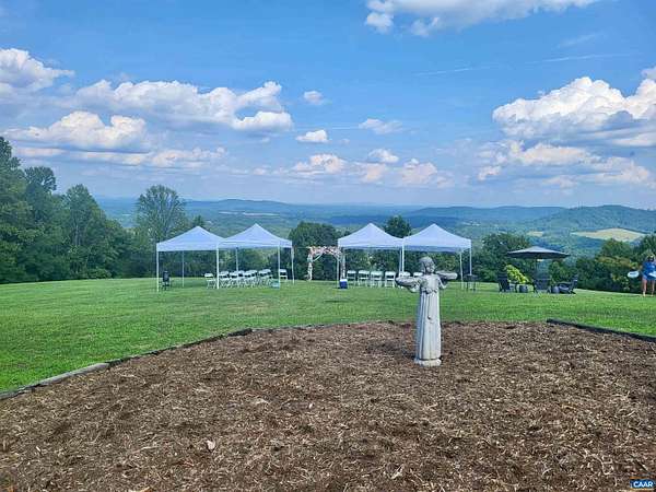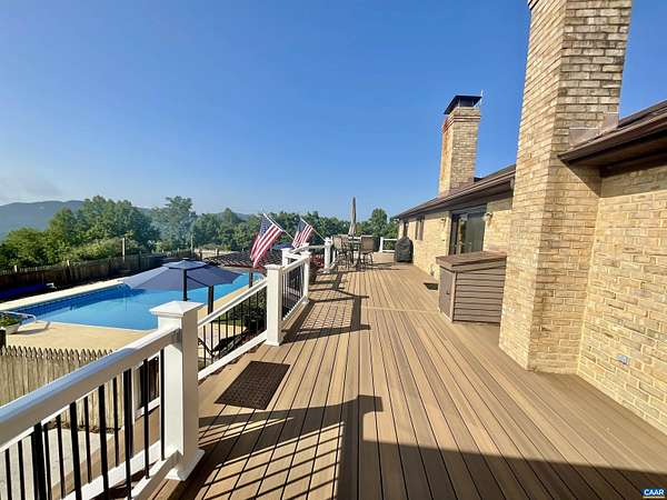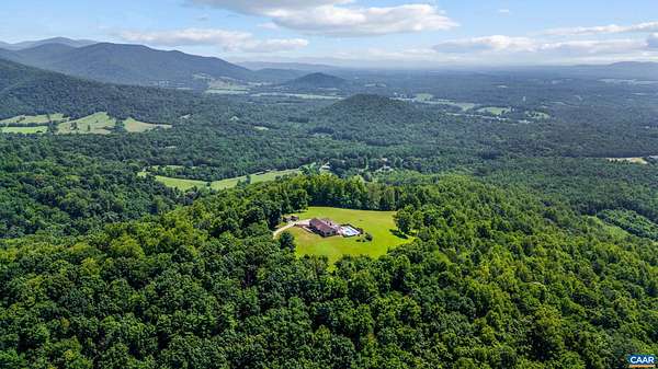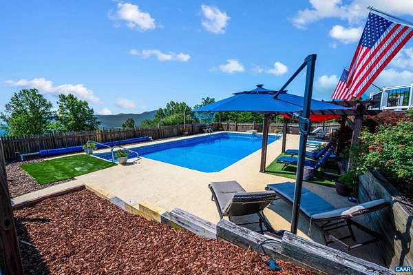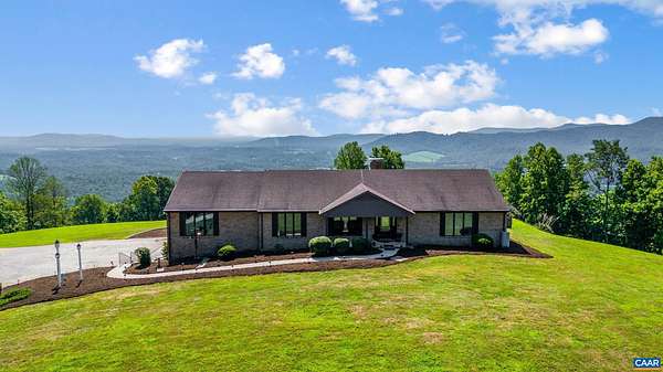 Discover unparalleled serenity atop 69 mountain acres, offering panoramic views of the majestic Blue Ridge Mtns. This exceptional all-brick home is a true sanctuary, perfectly blending style w the beauty of its natural surroundings. Step inside this spacious home featuring 3BRs 4 full baths, providing ample space. The thoughtfully designed layout maximizes comfort and showcases the stunning vistas from nearly every room. Outdoor living is an absolute dream here. Enjoy endless summer days by the in-ground heated pool, perfect for relaxation or entertaining. A large deck extends your living space outdoors, ideal for dining or simply soaking in sunrises or sunsets. For bug-free enjoyment, unwind on the peaceful screened-in porch, a perfect spot for morning coffee or cocktails. Adding to this property is a unique dependency featuring a rustic cabin, offering a quiet retreat or an inspiring artist's studio. You'll also find 2 fully wired sheds/workshops w electricity for hobbies and such. This is more than just a home; it's a lifestyle. Imagine waking up to the crisp mountain air, spending your days exploring your expansive property, and ending each evening with a breathtaking display of nature's grandeur.