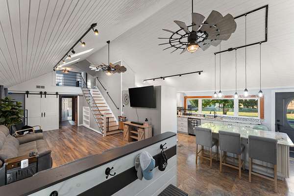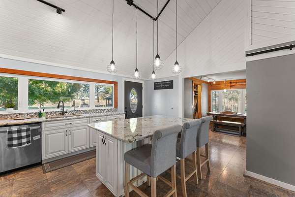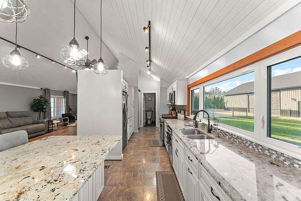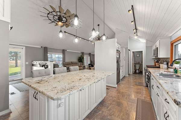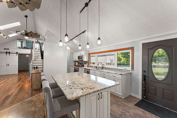 - Ceiling Fan(s), Double Vanity, Eat-In Kitchen, High Ceilings, His and Hers Closets, Kitchen Island, Open Floorplan, Stone Counters, Vaulted Ceiling(s)