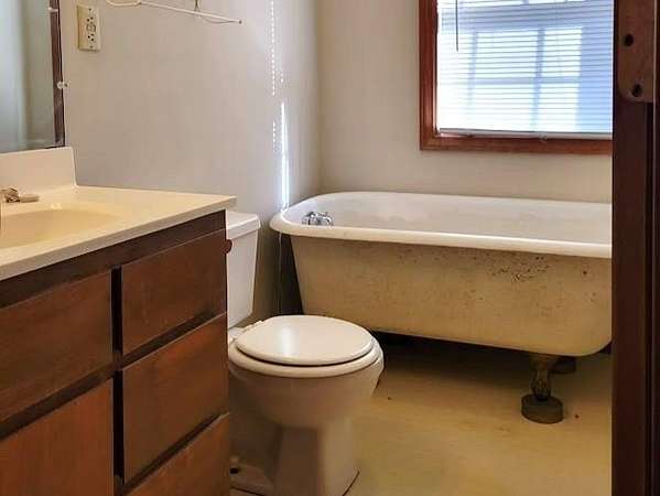 Est $881/moHome on 2 acres. Was used as a hunting cabin but could be updated to become a barndominium. Downstairs there's 2 roll-up doors, washer/dryer hookups, utility sink, closet under the stairway, & a tankless water heater. Upstairs there's a bedroom (but does not have a closet), full bath (tub only, no shower), eat-in kitchen, new laminate flooring, & deck. Outside there's 2 covered patios, covered cooking area (with concrete floor, sink, & stove), & 3 covered parking areas.