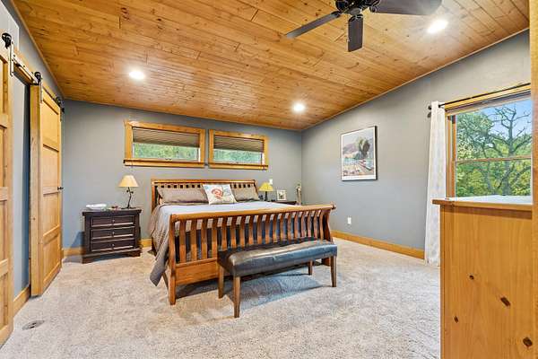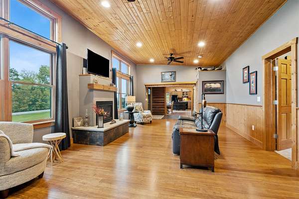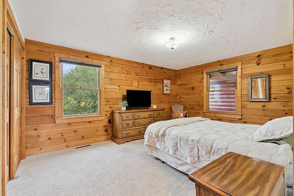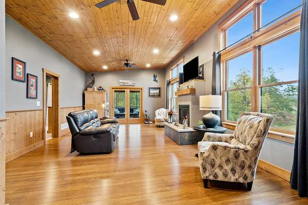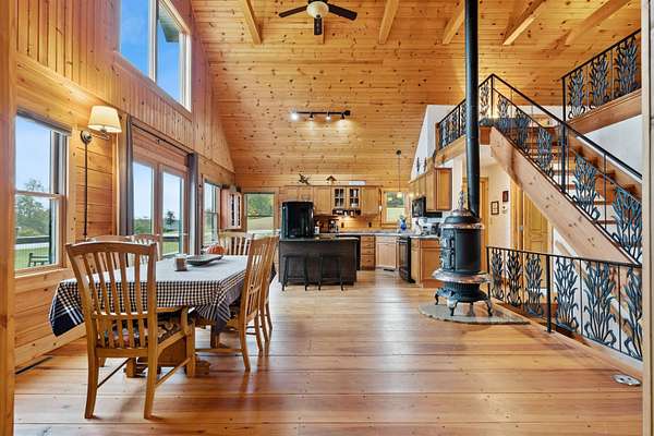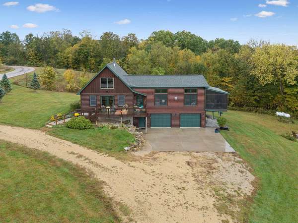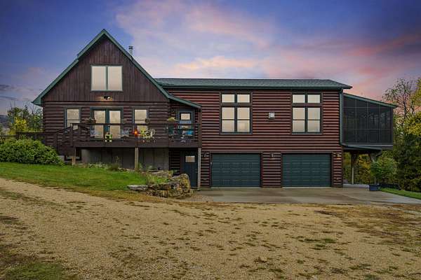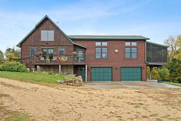 Experience Rustic Elegance with Modern Comforts on 2.84 Acres! Originally built in 2005 and expanded in 2016, this stunning 3 bedroom, 3 full bathroom log home now offers more than double its original living space while maintaining all its rustic charm. The welcoming deck leads to the front entrance, opening into a spacious living room highlighted by a cozy fireplace. Just off the living area, a screened-in porch invites you to enjoy the outdoors in comfort, free from pests. The main floor features an open kitchen and dining area with an island and a loft overlooking the space, perfect for gatherings and everyday living. The main-level suite offers a walk-in closet, heated-floor bathroom, and an impressive walk-in shower. A second bedroom, full bath, and convenient laundry room complete the main level, with a door leading to a small covered spot ideal for grilling. The lower level expands your living options with a comfortable sitting room, full bath, hobby or office space, and a large third bedroom. From the sitting area, you can access the 4 car garage, featuring two front doors and one rear door for added versatility, allowing you to drive thru for boats or other recreational vehicles on the one bay. Plus the garage is equipped with a car charging ready 220 port. Beneath the screened porch is a patio area, and just steps away, a firepit awaits for evenings under the stars. Set on 2.84 acres surrounded by timber, this property offers beautiful views and the peaceful presence of local wildlife, from deer to eagles. Don't miss this rare opportunity to own your own private retreat, schedule your showing today!