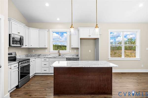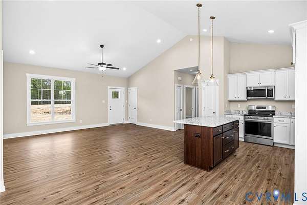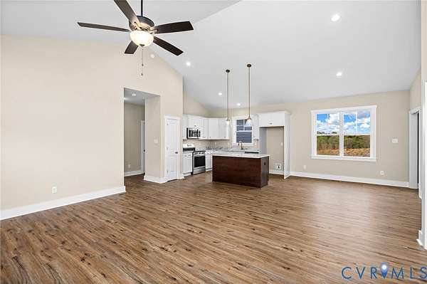Modern comfort meets peaceful rural living in this beautifully designed home featuring the popular Bluestone Creek floor plan a 4 bedroom, 2 bath home. The open concept great room boasts a soaring cathedral ceiling and flows seamlessly into the dining and kitchen areas, perfect for entertaining and everyday living. The kitchen shines with granite countertops, Merillat cabinets, a central island, and pantry, while durable LVP flooring extends throughout the main living spaces. Enjoy serene country life on a private 2.7-acre lot in desirable Buckingham County, just 20 minutes from Scottsville and Dillwyn, close to schools, amenities, and recreation. This home offers the perfect combination of modern design and natural charm.