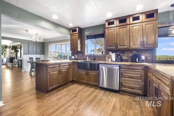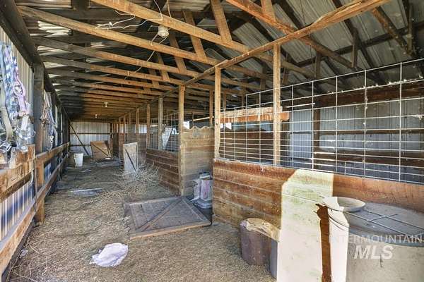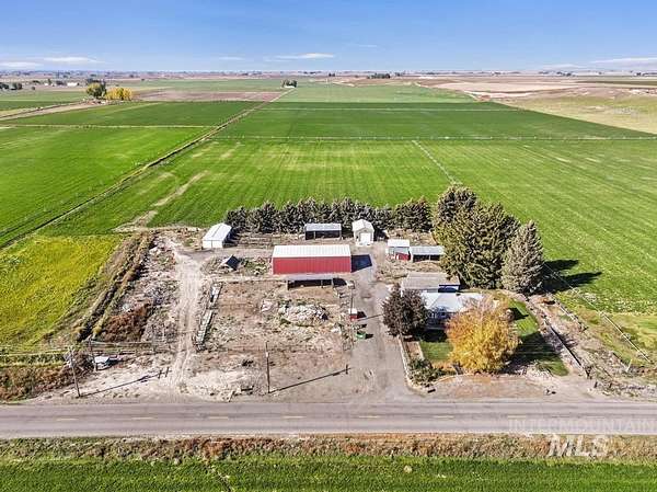 Shops, shops, and more shops. This great property with wonderful views of Mt. Harrison sits on 2.3 acres of fully ditched and irrigated land. 3 bedrooms, 2 bathrooms. Huge master bath and closet. Cozy wood stove in living room. Large kitchen, newer appliances. HVAC outside heat pump compressor is only a couple of years old. Back to the shops, 1 is approx 2800 sq ft, 13 tall x 18 wide door opening, partial concrete floor (w/electricity). An insulated detached garage (w/electricity), an insulated 240 sq ft shop (w/electricity), couple of pole barns, another 760 sq ft garage/shop. Now for the finale, a 4 stall horse barn. Property has some fencing and a corral area. Plus multiple large fruit trees. A must see for those wishing to be in the country.