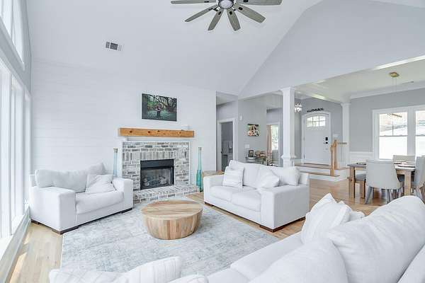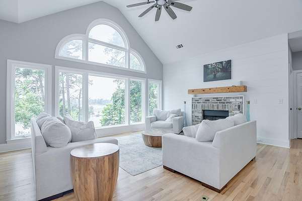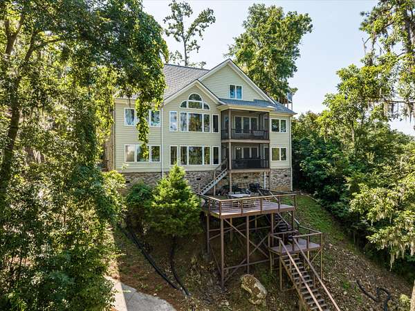 Introducing one of North Augusta's most distinguished riverfront residences offering the most breathtaking views in all of North Augusta - a masterfully renovated estate perched on the banks of the Savannah River, with unrivaled panoramic views and a lifestyle defined by elegance, comfort, and serenity! Spanning nearly 4,000 square feet, this 6-bedroom, 4-bathroom home seamlessly blends sophisticated design with modern functionality. From the moment you step inside, you're greeted by light-filled interiors and walls of glass that frame sweeping river vistas from nearly every angle! The main level is a showcase of open-concept luxury - an entertainer's dream - featuring a designer kitchen, expansive living space, and direct access to an elevated deck overlooking the water. The primary suite is a true retreat, complete with a spa-inspired bath featuring high-end finishes and a smart heated toilet seat for an indulgent touch. Two additional bedrooms and a full bath complete this level. The upper floor offers a private suite with a full bath and commanding river views - ideal as a guest sanctuary, home office, or artist's loft. The fully finished lower level presents endless possibilities with two bedrooms, a full bath, living area, kitchenette, and private entrance - perfect for multigenerational living, long-term guests, or income potential. Whether it's sipping coffee at sunrise or unwinding with a glass of wine at sunset, the riverfront lifestyle here is simply unmatched. This is more than a home - it's a rare opportunity to own a slice of waterfront luxury in one of the area's most coveted locations.