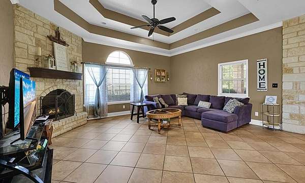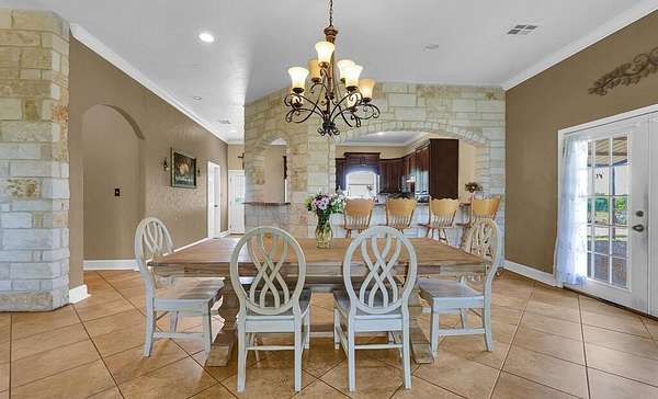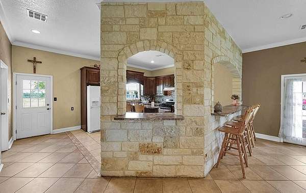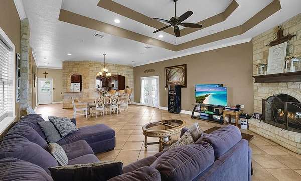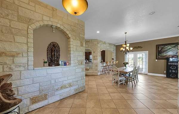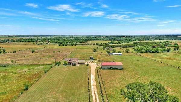 The ranch-style home boasts a classic white stone exterior and welcomes you with an open, airy layout. Inside, you'll find a spacious living area, and a large kitchen, all under beautiful tray ceilings that add warmth and charm. Whether you're looking to build your dream homestead, start a small ranch, or enjoy weekend getaways, this property is ready to make your vision a reality.