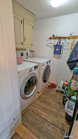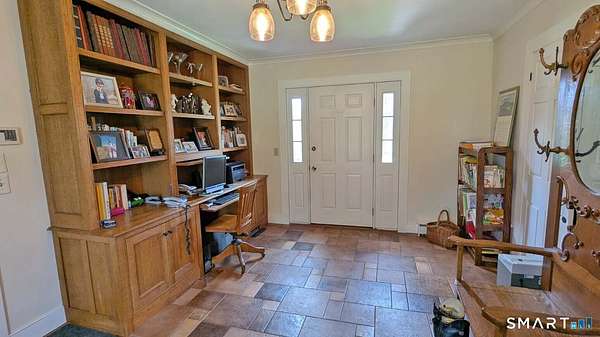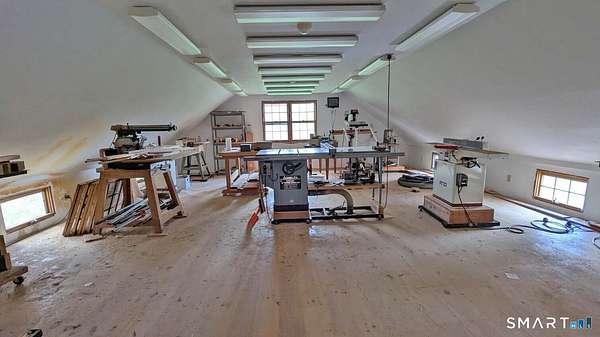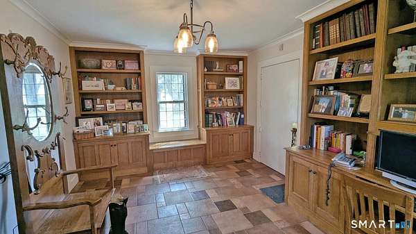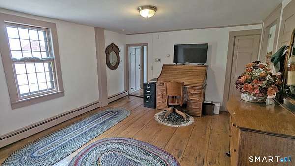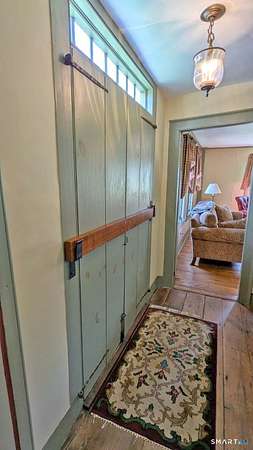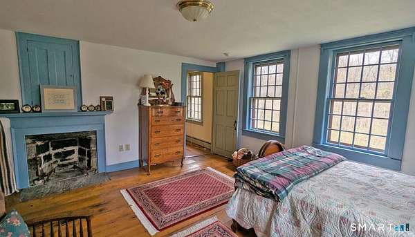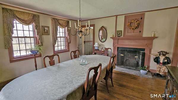 Built in 1750, this beautifully updated and meticulously maintained historic home blends timeless character with modern comfort. Rich wide-board floors and classic 12-over-12 windows highlight its heritage, complemented by four fireplaces throughout the home. The inviting kitchen features granite countertops, custom cabinetry, a wood stove, and abundant natural light from multiple windows and a sliding door leading to the patio-perfect for everyday living and entertaining. A charming library with custom built-ins sits just off the kitchen, offering a cozy and functional retreat. Both the living and dining rooms showcase impressive fireplaces with updated liners, enhancing both style and efficiency. Two staircases provide convenient access to the second floor, where you'll find two spacious bedrooms, a beautifully remodeled full bath, and an additional room ideal for a nursery. An open landing area between the bedrooms offers flexible space for a home office or playroom. Set on 3.8 acres of rolling, usable land, the property also features a new driveway, an expansive three-car garage with a loft workshop-perfect for hobbies, storage, or creative pursuits, a barn and a well house. A rare opportunity to own a thoughtfully preserved historic home with modern updates in a serene setting. Country living at its best.