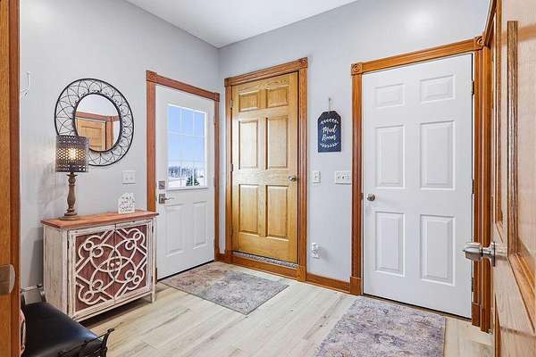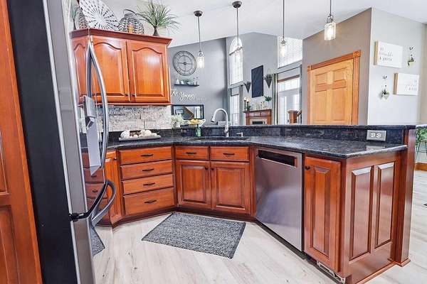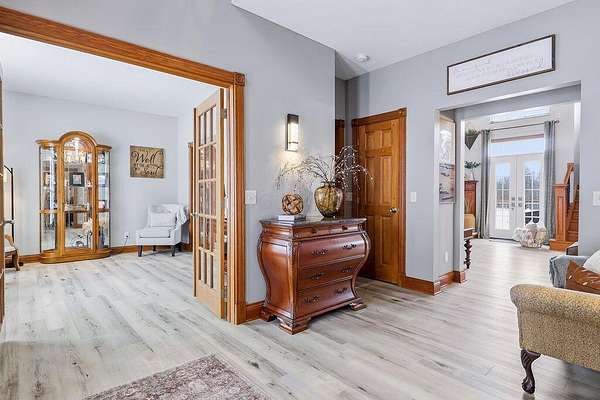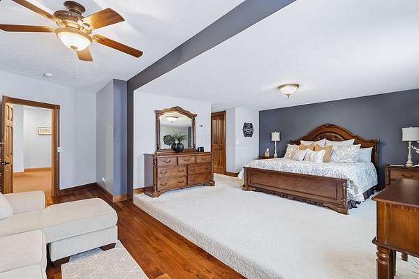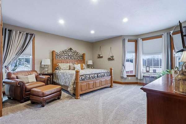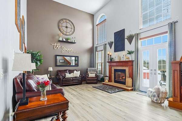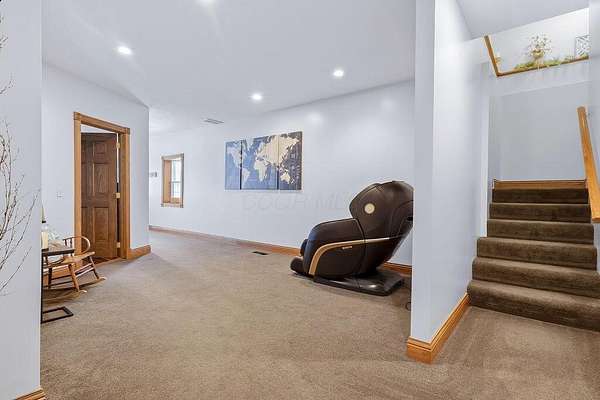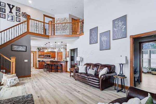 Experience luxury living in this stunning one owner estate nestled in the picturesque Clear Fork Valley. This exceptional property offers 5 bedrooms and 5.5 bathrooms, including three private primary suites--one on each level--providing unmatched comfort and flexibility. A dramatic two story foyer opens to an impressive family room featuring a soaring wall of windows, elegant fireplace, and open catwalk. The gourmet kitchen is beautifully appointed with cherry cabinetry, granite countertops, newer appliances including an induction range, and a spacious pantry. A convenient first floor laundry adds to the home's functionality. The walkout lower level is designed for entertaining, complete with a large recreation room, wet bar, patio access, fire pit, hot tub, and a tranquil waterfall feature. Step outside to your own private oasis with an in ground pool, multiple seating areas, and breathtaking sunset views that make every evening unforgettable. Recent upgrades include a new roof (2025), new flooring (2022), and new windows and doors (excluding main entry) in 2024. Additional highlights include an insulated poured wall foundation, central vacuum, geothermal heating and cooling, extensive storage, and a spacious theater room perfect for movie nights. Car enthusiasts and hobbyists will appreciate the attached 3 car garage plus a 40' x 60' pole barn (built in 2019) featuring a loft and a finished 9' x 13' room--ideal for a workshop, studio, or additional storage. Located near I71, Snow Trails, MidOhio Raceway, Mohican State Park, and Polaris, this property offers the perfect blend of luxury, privacy, and convenience. A rare opportunity to own a meticulously maintained home with extraordinary amenities in an unbeatable setting.