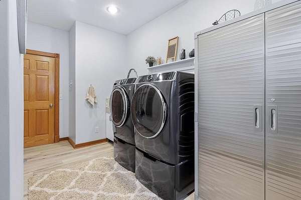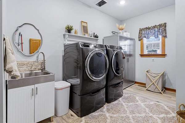 - Carpet, Ceramic/Porcelain, Vinyl, Wood
