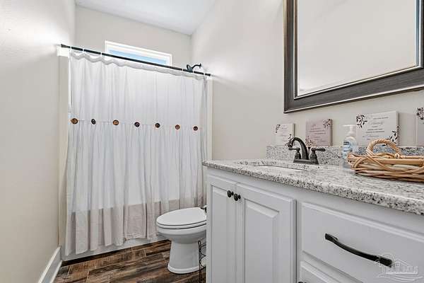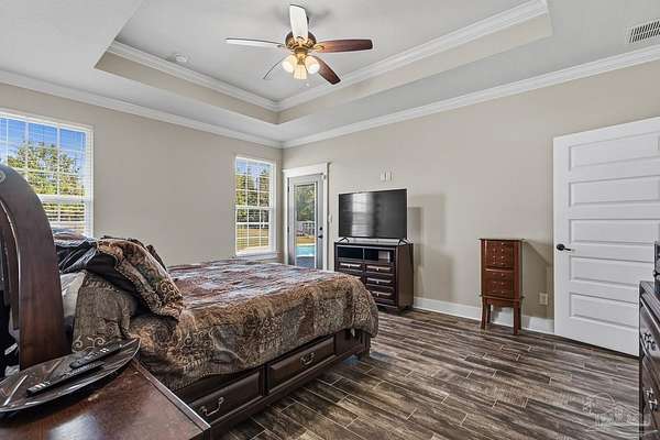 Discover the perfect blend of privacy, style, and space on this stunning ~13-acre estate located in the peaceful rural community of Molino, about 30 minutes north of Pensacola. A gated entrance and a 400+ foot driveway lead to this stately single-level home, built in 2018 and thoughtfully positioned amid cleared land with a beautiful natural tree buffer for added privacy. Inside, you'll find 4 spacious bedrooms and 4 full bathrooms, plus an office or 5th bedroom. The versatile 4th bedroom is currently being used as a home gym. The open-concept living, dining, and kitchen area is ideal for entertaining, featuring a large kitchen island, granite counters, gas stove, farmhouse sink, and an oversized walk-in pantry with abundant storage and workspace. Ceramic wood-look tile flooring flows seamlessly throughout the home, complementing the 13' ceilings and transom windows that flood the living area with natural light. A cozy gas fireplace with built-in cabinetry and shelving adds warmth and charm. The luxurious primary suite with 10' ceilings offers a massive bathroom and an expansive walk-in closet. The laundry room is conveniently located near the primary suite, kitchen, and garage for easy access. Step outside to enjoy a covered back porch 11' x 47' that spans nearly the entire length of the home, overlooking a sparkling gunite saltwater pool and fenced pool deck. Beyond the pool area, a separate organic garden space provides the perfect spot for planting--or can serve as a dedicated dog run. Additional features include a stately front porch with an 8' door and dormer accents, an oversized side-entry garage, a metal carport for extra covered parking, chicken coop & UV air purification system integrated into the HVAC for enhanced indoor air quality. Experience the best of both worlds--quiet rural living with quick access to shopping, the interstate, and all that Pensacola has to offer. This is a must-see property that truly has it all. Schedule your private showing today!