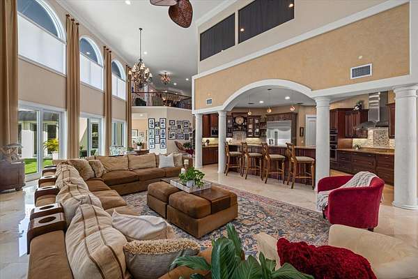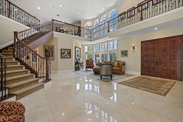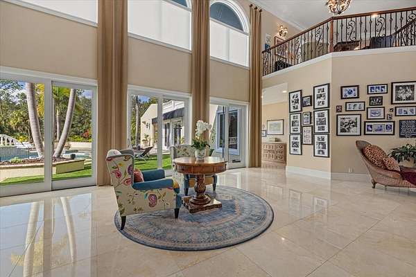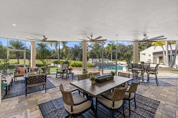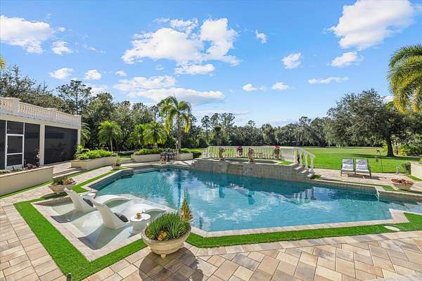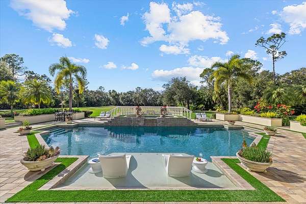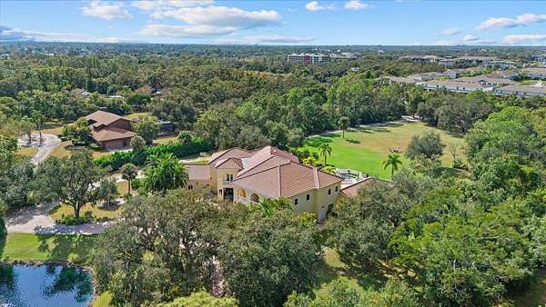 Set behind a private gated entrance and approached by a sweeping drive that curves around the front pond, this 5.6-acre Sarasota estate offers privacy, size and distinction, along with a long list of high-end improvements. upgrades include a 2025 roof, brand-new whole-home generator, comprehensive smart-home systems, a new pool deck with pavers and turf, 4-hole putting green, new outdoor kitchen, refreshed irrigation well (2024), reverse-osmosis well system, 5 AC units, 2 gas tankless water heaters, 2 in-ground propane tanks, 500 Gallon RO Tank, a 1450 aeroator tank, and refined interior details such as Venetian plaster walls and custom cherry wood in-lay flooring in the game room loft area. The result is a property that feels both luxurious and exceptionally well cared for. Beyond the upgrades, the home offers more than enough space for large-scale living and entertaining. The main living areas are anchored by a 24-foot high ceiling in the great room, a dedicated theater room, and an expansive game room/loft area with full bar, balcony, and additional loft space. Smart-home features include a phone-controlled gate system, whole-property cameras, Sonos audio, smart garage access, and an integrated alarm system. The primary suite occupies its own wing, designed with two oversized walk-in closets, a private exercise room with sauna, and a spa-like bathroom featuring a jacuzzi tub, dual sinks, and a large shower with double heads and body sprays. Four additional en-suite bedrooms include features such as private balconies, outdoor entrances, oversized closets, and a convenient laundry chute. Each bedroom offers generous square footage, giving guests or family members plenty of room to spread out comfortably. Two additional flex rooms offer options for an office, studio, homework area, or additional sleeping space. The kitchen is equipped with GE Monogram built-ins, a Bosch espresso machine, wine cooler, mini fridge, two sinks, and an adjacent formal dining room. Additional interior features include a 3-car garage with specialty flooring and storage systems plus an EV Charger, a dedicated dog spa room, homework/craft/sewing room, separate fenced run, extensive cabinet storage, two staircases, and a spacious laundry room with desk nook. Outdoor living has been fully modernized with a redesigned pool area, electric and gas heaters, pool bath and changing area, and outdoor shower. The property also offers the rare ability to add two additional structures, along with a scenic pond, mature landscaping, and abundant wildlife. Location is another standout feature. While the estate feels tucked away and exceptionally private, it sits just minutes from I-75, offering quick access to the greater Sarasota region. Downtown Sarasota is an easy drive at roughly 10-12 miles, Siesta Key Beach is about 15 miles away, and travel is convenient with SRQ Airport approximately 15-20 miles and Tampa International Airport about 55-60 miles from the propertyThis blend of privacy, acreage, and proximity to everything is truly rare--allowing you to feel worlds away while staying connected to the best of Sarasota. Call for a private tour today. Copy and paste the following link for a luxury video.