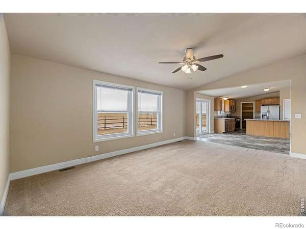 Wide-open space, big-sky views, and room to actually use your land, 35501 County Road 80 in Briggsdale delivers a true country setup with 4 bedrooms, 2 baths, and 2,052 square feet - plus a hard-to-find 1200 sq ft detached building that can be a 6-car detached garage, workshop, or combination of both. Plenty of room for all your toys and projects.Inside, the home lives comfortably with two separate living areas, central A/C, newer windows, a generous pantry, and large closets in every bedroom. The layout offers flexibility for everyday life, hobbies, and guests, with plenty of storage where it matters.Outside is where this property really shines: 10+ fenced acres with a separately fenced backyard area for pets, plus room for horses, livestock, and a true hobby-farm lifestyle. Take in mountain views, unforgettable Colorado sunsets, and the added privacy of no neighbor behind you - along with frequent wildlife sightings. A household-use-only well is already in place.