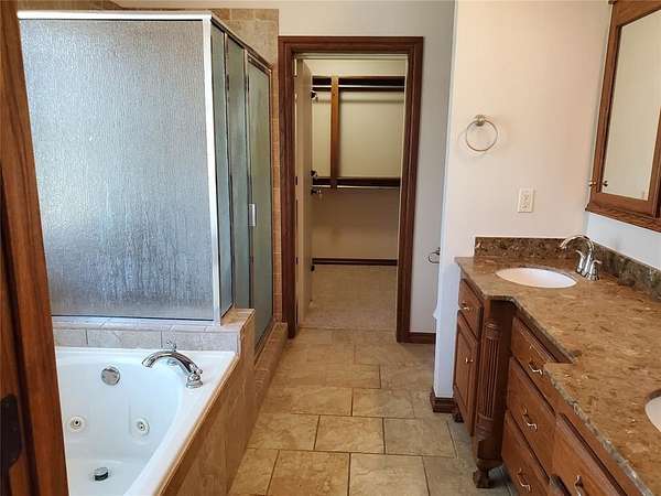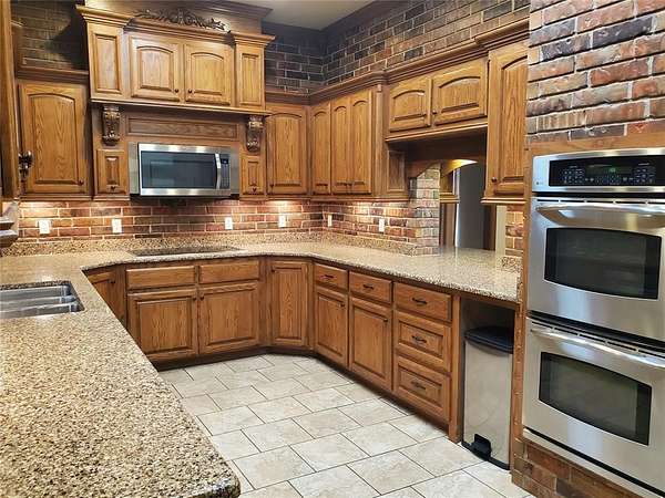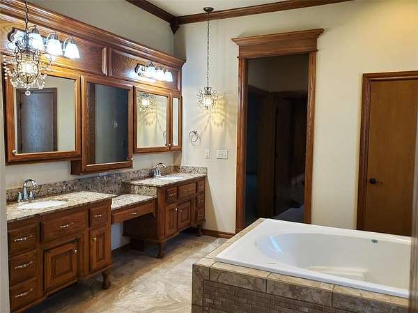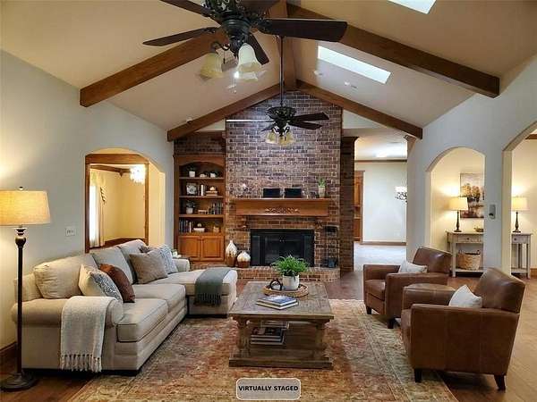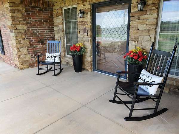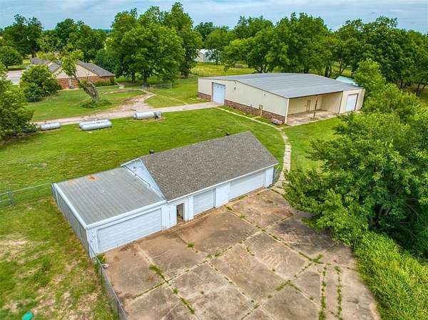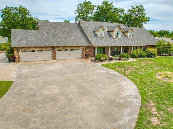 This striking estate on 115 acres with modern farmhouse details may be your FOREVER HOME! This is a multi-generational property with a stunning main house & guest house. The main house is 4551 square feet with 4 bedrooms, 3 baths, huge family dining/ chef's kitchen, formal dining room, double living area with a walk in bar & huge fireplace, office w/exterior exit, laundry room. The primary suite has a spa bath, closet the size of a spare room, safe room, & a fireplace. The home has dual HVAC & water heaters. And a generator. Cedar flake board lined closets. Granite though out! Custom window treatments. 4 car garage, walk in storm shelter/safe, inground storm shelter, 327 sq ft screened in porch (not included in sq ft). The guest suite has 32" access doors & bathroom that has a jetted walk-in tub & grab bars. 3 concrete ramps around the house at the front porch, garage, back patio. The Guest house is 2105 sq ft with 4 bedrooms, 2 baths, 2 car garage, wood burning fireplace. Open floor plan, mother in law set up, master suite with a walk in shelter/safe. Guest house has all new paint, built in appliances, window blinds. Brand new Anderson front storm door. BOTH HOUSES have new real wood plank flooring, new carpet, ALL new plumbing fixtures, All new doors locks and deadbolts, keyed to match. Between both houses there have been replacements of toilets , drains, toilet seats, ceiling fans, interior & exterior light fixtures. New wine fridge in main house. 2 NEW Aerobic Septic systems! New water heater in guest house. New furnace in main house. Roofs replaced on both houses & detached 5 car garage in 2023. Both houses have wrought iron fences and gated electronic entry. Entire property is fenced. East end of the property is a working pecan grove! West end is pasture & farmland. The main barn is 77 x 90 & a lean to that's 24 x 60. To the west are the storage and livestock barns each measuring 40 x 50. All fenced. Easy access to I-40, just minutes to Tinker! Dale Schools.
