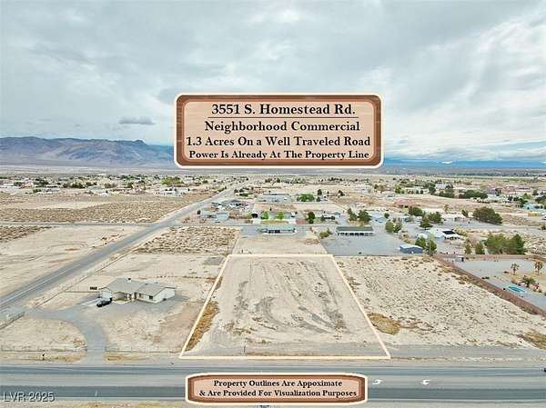 Fantastic Potential Awaits With This Wonderful 1.3 Acre Parcel!~~~Zoned Neighborhood Commercial & Located On One of Pahrump's Most Traveled Roads & Less Than A Minute Away From The New Circle K On The Same Street~~~Power is Already To The Property Line & It Is Designated For Well & Septic, So No Need To Pay Extensions Fees For Public Water & Sewer~~~Located 10 Minutes From The Center Of Town In A Southern Pahrump Area In Need Of Commercial Development & Conveniently Situated Just As You Come In From Las Vegas~You Have Over 50,000 Sq. Feet To Work With~~~Some of the Possibilities That Are Permissible (Defined by Nye County Zoning Code) Include: *Mini-Storage Facility (Which Can Include a Residence)*Restaurants*Retail or Professional Establishments*Child/Adult Care*Veterinary Facilities (Including Kennels) & Much More~~~The Seller Will Finance (If Needed) With 35k Down Or Ask About Lenders Now Offering Land Loans~~~Get Your Commercial Parcel in Pahrump at This Great Price Today!