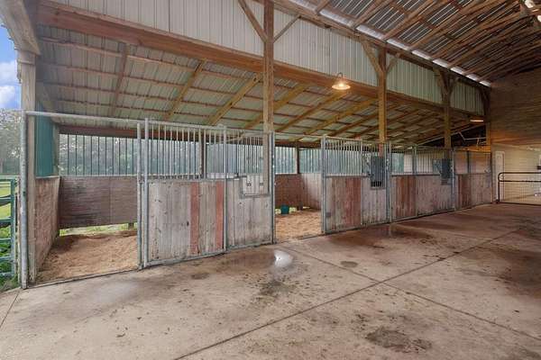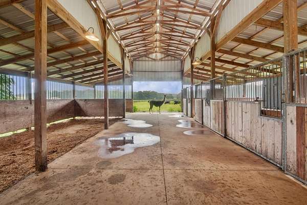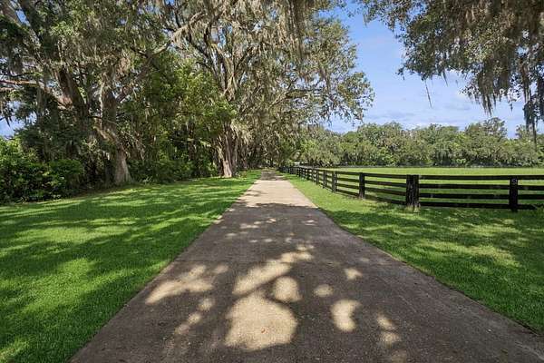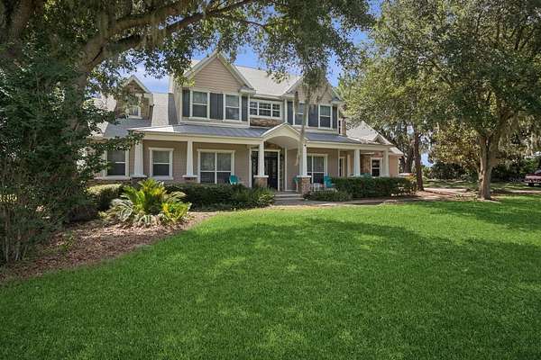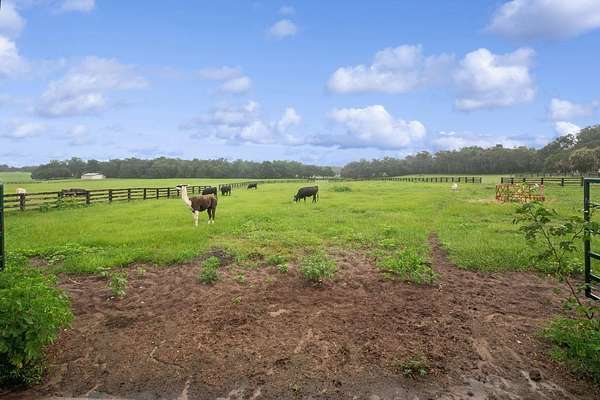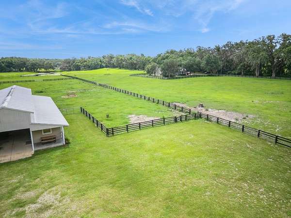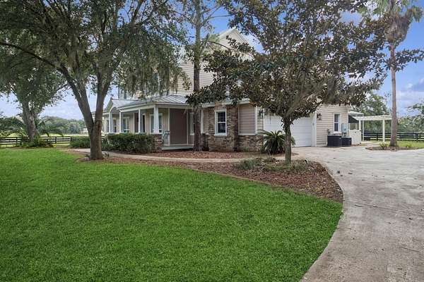 Lawn Care and Pool Care is included. Welcome to an extraordinary 11-acre equestrian estate that delivers not just a home, but a way of life. The main residence features 5 spacious bedrooms and 3.5 bathrooms. Wake each morning to peaceful views across rolling pastures, where soft morning light filters through a canopy of towering oak trees, some with trunks more than five feet wide, offering both shade and timeless charm. Whether you're an equestrian enthusiast, hobby farmer, or simply craving space and serenity, this estate delivers the perfect blend of modern comfort and country charm. The main residence spans 3,890 square feet of thoughtfully designed living space with soaring 20-foot tongue-and-groove pine ceilings, a two-story stone fireplace, and a grand staircase made for memory-making. The first-floor primary suite offers dual walk-in closets and a spacious ensuite bath, while four additional upstairs bedrooms—including one nearly the size of a studio apartment—surround an open loft overlooking the great room. The living room (20x16) is perfect for cozy nights or lively gatherings, and the oversized kitchen (25x14) comes equipped with new Samsung appliances (2023) and two sets of washers and dryers in the separate laundry room to make everyday living effortless. This home also includes a new A/C system and a new roof installed in 2024, offering peace of mind for years to come. This home was built with both beauty and practicality in mind—from laundry chutes and storage galore to real hardwood floors and luxury finishes. Step outside and picture yourself relaxing by the heated pool and elevated spa under a screened enclosure, or casting a line into your private pond. Majestic oak trees provide the perfect shade for hammocks and picnics, and every acre is bordered with four-board wood fencing to keep your animals secure and your privacy intact. With a well serviced by premium Kinetico water systems, you'll enjoy fresh, clean water no matter where you are on the property. All of this sits just minutes from The Villages for shopping and dining, only 40 miles from the World Equestrian Center in Ocala, and about an hour from the magic of Walt Disney World or the sandy shores of either Florida coast. There are no HOA restrictions, just wide-open freedom to create the lifestyle you've always dreamed of. This is your chance to own more than a home. It’s a place to plant roots, raise animals, host unforgettable gatherings, and live out your dreams in one of Central Florida’s most unique and desirable locations.