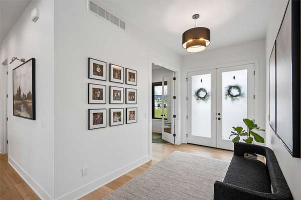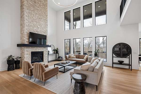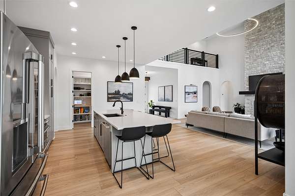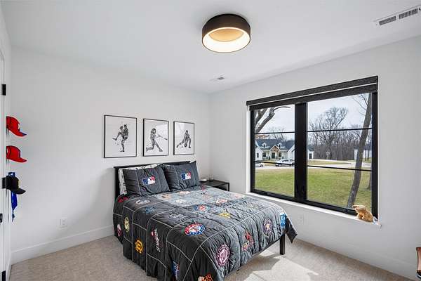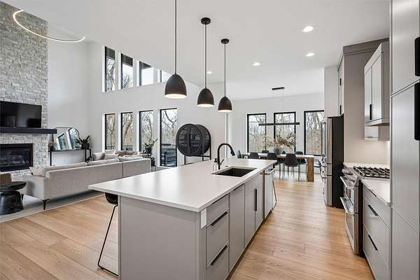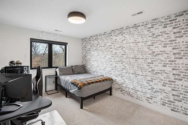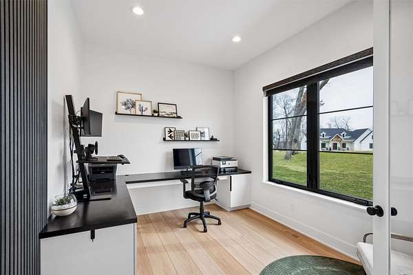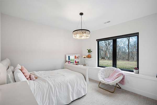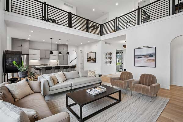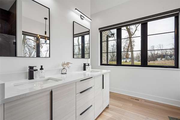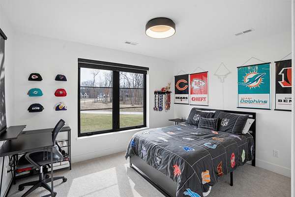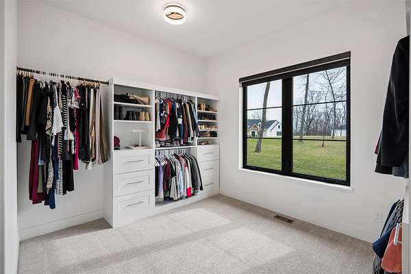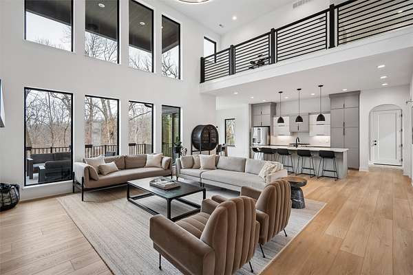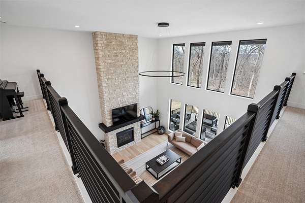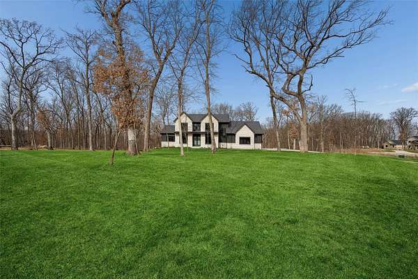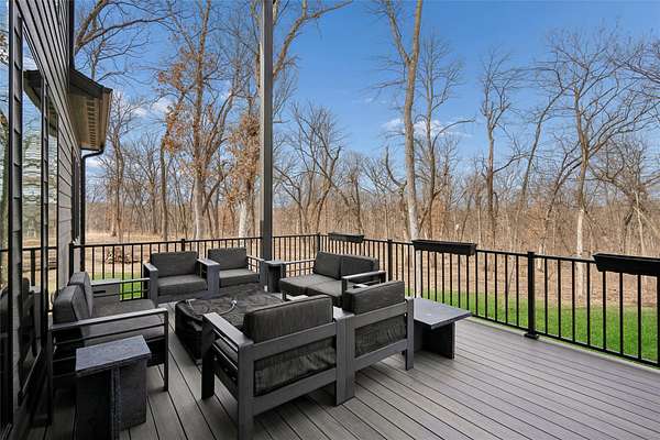 Stunning 5 BR, 4 BA 1.5-story situated on a private 2.62-acre executive lot in the highly sought-after Van Meter School District. Tucked among mature hardwood trees and positioned on the corner of two quiet cul-de-sacs, this home offers exceptional privacy and over 4,500 square feet of finished living space. The open main level is filled with natural light and features a two-story living room, a well-appointed kitchen with GE Cafe appliances, dining room, pantry, office, half bath, a spacious primary suite, and main-floor laundry including a coat and shoe closet. The upper level features three additional bedrooms, a full bath, and a versatile loft area. The finished lower level adds a fifth bedroom and full bath, expansive family room, exercise room, wet bar, and generous unfinished storage. Enjoy outdoor living on the large deck overlooking a dense wooded backdrop, plus the convenience of an oversized 4-car garage. Includes radon, irrigation, and reverse osmosis water system.