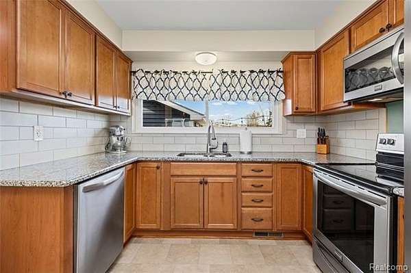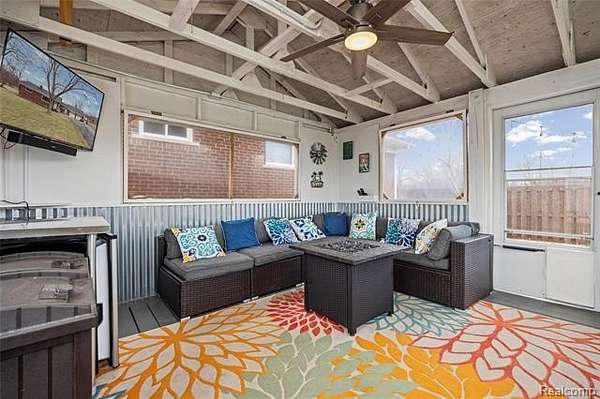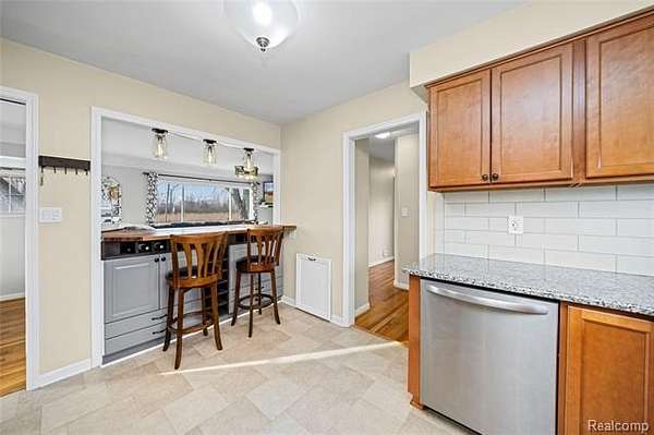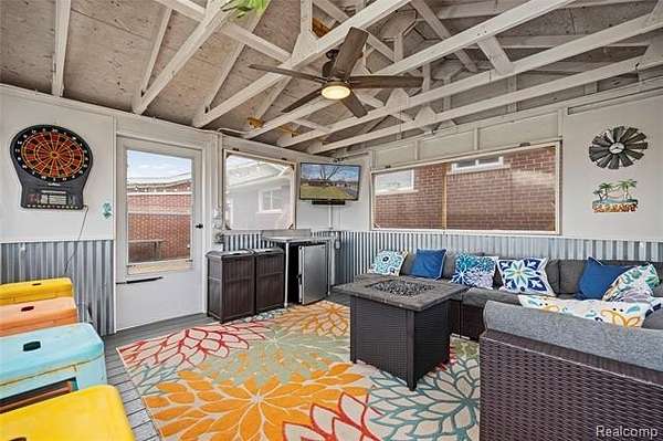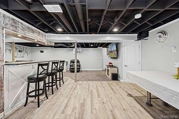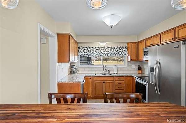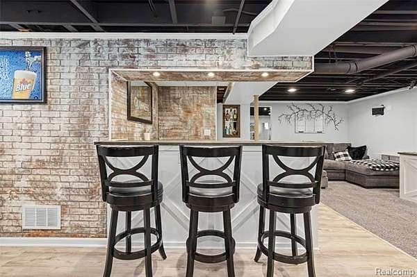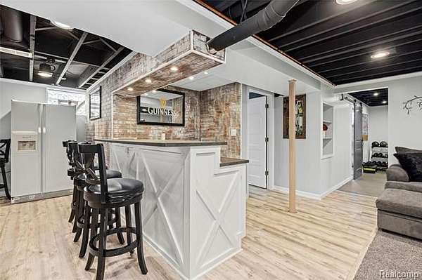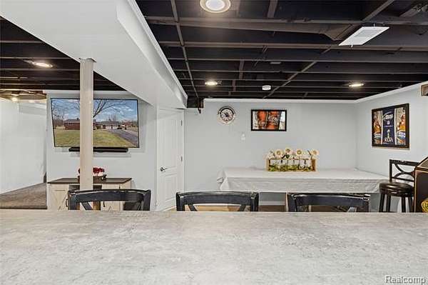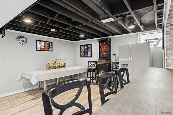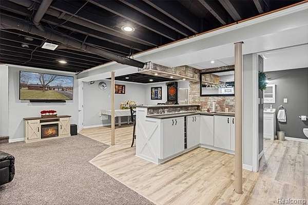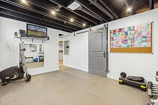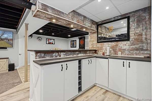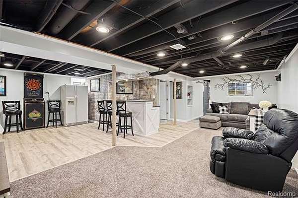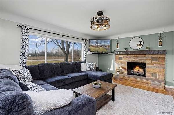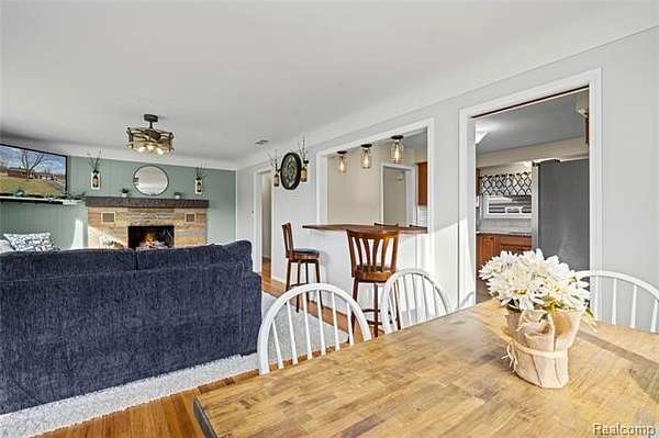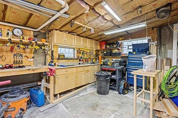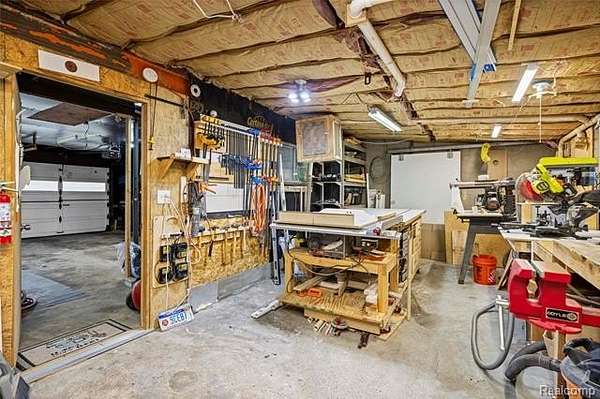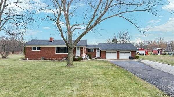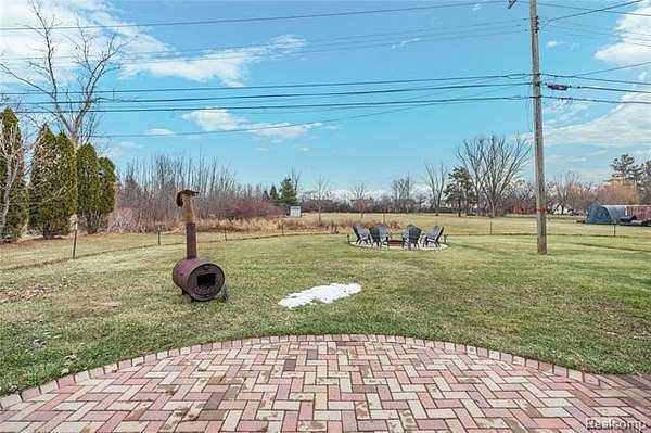 Enjoy the best of country style living just minutes from the city on nearly two acres in Canton Township. This 3-bedroom, 2-bath brick ranch offers a spacious finished basement complete with a bar, full bathroom, and dedicated workout room, perfect for both entertaining and everyday living. An oversized 2.5 car attached garage with an additional 26' x 12' workshop provides exceptional space for storage, hobbies, or projects. Step outside to your own private backyard retreat featuring two expansive brick paver patios, an exterior pub shed (see photos), and a brick paver firepit overlooking serene views, ideal for relaxing or hosting guests. Inside, the granite kitchen includes stainless steel appliances and a convenient snack bar overlooking the bright living room with breakfast nook and gas fireplace. Additional highlights include a large first-floor laundry/mud room, hardwood floors, generous storage, central air, and a complete professional waterproofing system with backup sump pumps. The home is also connected to city water and sewer for added convenience. Where else can you find a brick ranch on acreage with an oversized attached garage, workshop, finished basement, and first-floor laundry, all for under $375k? This is truly a must see opportunity.