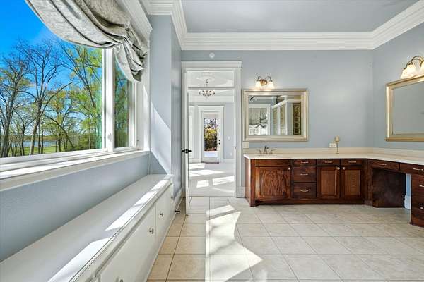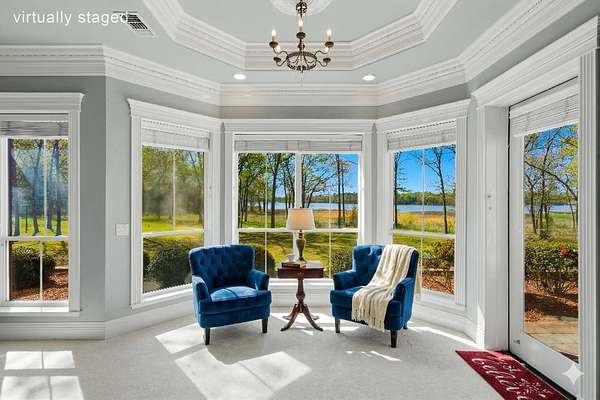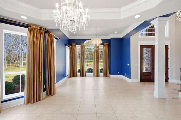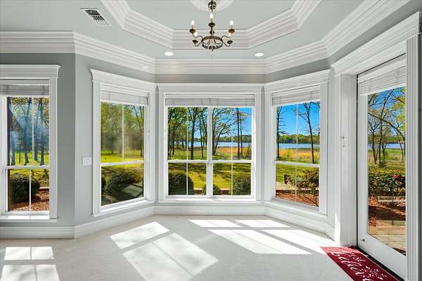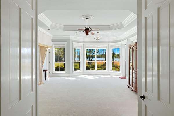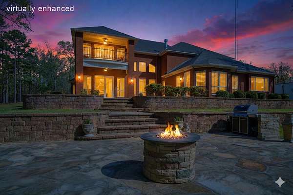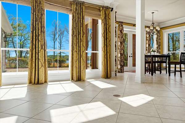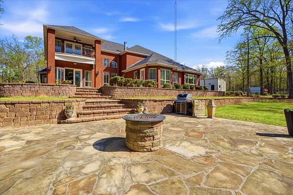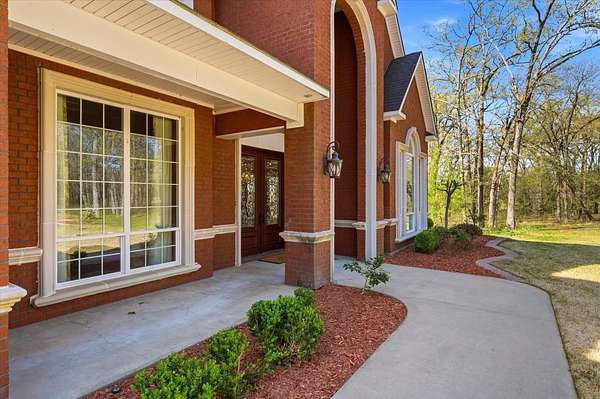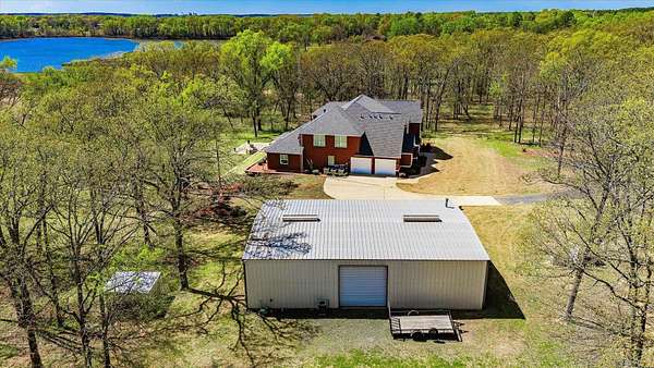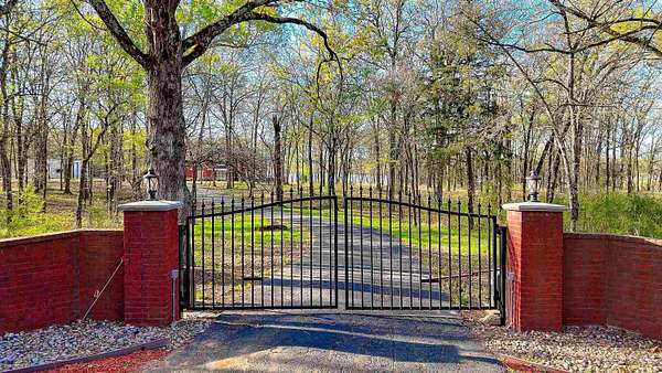 A HIDDEN GEM ON TANKERSLEY LAKE with OVER 700 FEET of waterfrontage is a perfect backdrop to this elegant 2-story home, engulfed by 25+ acres with a secured gated entrance. The front door says it all - enter into the grand entrance garnished with a crystal chandelier, beautiful moldings, and a cascading staircase. The formal living and dining rooms are joined by floor-to-ceiling windows and elegant crystal chandeliers. The well-appointed kitchen with stainless steel appliances, a fabulous six-burner gas range, and casual dining overlooking the panoramic lake view brings the family together. The lovely stone corner fireplace flanks the beautifully crafted entertainment cabinet. The exceptionally large primary bedroom has a peaceful view of the lake and a private door to the back patio. More luxury and relaxation await in the primary ensuite, which offers a spa tub, dual shower heads, dual vanities, and a massive walk-in closet that connects to the laundry room. The remaining 3 bedrooms, game room, and media room are on the 2nd story with banisters overlooking the family room. The home office is off the front entrance, and it is adorned in oak paneled walls and a coffered ceiling. When unexpected weather arises, rest assured, the generator has you covered. The private internet tower is your connection to the world. This private 25+ acres boasts a 40'x 60' climate-controlled workshop with 3-bay openings, a separate man-cave with full bath, and an exceptional 2nd-floor storage space. There are 3 separate pens for animals near the shop, an outdoor basketball court, and a deep-water well that services the home and property. When looking for a piece of God's country that meets your homestead needs, plus being a smart investment, the time to act is now! Call for an appointment to see this gem of a property.