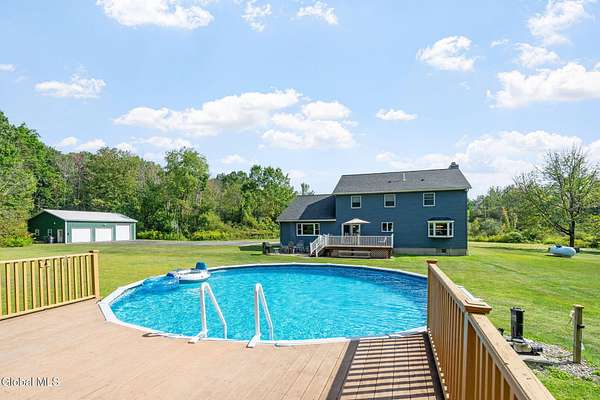 Discover this custom 2,864 sq. ft. Colonial set on 8 private acres in the Ballston Spa school district. This beautifully maintained and immaculate home offers a spacious layout with room for everyone. The finished basement provides additional living space, perfect for a family room, home office, or guest suite. Step outside and enjoy summer fun with the above-ground pool, or retreat to your own sanctuary surrounded by nature. A 1,200 sq. ft. pole barn makes the ideal space for a hobbyist, workshop, or for storing all your recreational toys. With its blend of privacy, functionality, and charm, this property truly has it all-peaceful country living just minutes from conveniences. A rare find in today's market! 3D tour attached. Showings Start Saturday 9/13