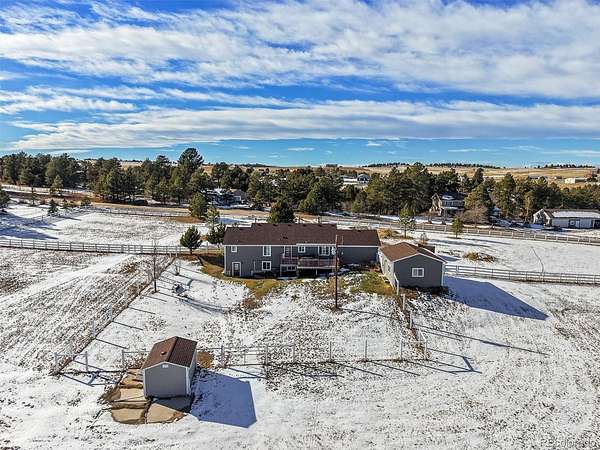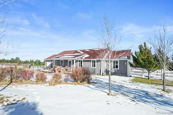 WELCOME HOME! Gorgeous ranch located in Pawnee Hills subdivision in Elizabeth, Colorado! Where peaceful country living meets everyday convenience. Situated on 5 beautiful acres, this home offers the perfect blend of open space, privacy, and easy access to amenities. Located just minutes from downtown Elizabeth, you can enjoy local shops, dining, schools, and community events without giving up the quiet, wide-open lifestyle that makes this area so special. The acreage provides plenty of room for outdoor enjoyment, future expansion, and, of course—horses are absolutely allowed! This is a perfect set up for horses- build a loafing shed and have your horses graze in the back acreage that is a fully fenced lot with all usable acreage- your dream outdoor setup! New features include roof in Dec 2024 along with gutters, soffits , and facia. New James Hardie siding and storm doors in 2024. Newer Milgard windows, stainless appliances, granite counter tops, secure gate, and 3 rail white fencing. Open kitchen with large walk in pantry. Primary bedroom has 2 good size closets and a remodeled primary bathroom. 3 bedrooms and 2 bathrooms on the main level and 2 bedrooms and bath in the basement. Large detached garage that is perfect for those wanting a work shop or room for more cars, tractors, or RV's. This is an exceptional opportunity to own usable acreage in a prime location—perfect for anyone seeking tranquility, elbow room, and the best of Colorado country living. Wired for generator, generator is negotiable. Pawnee hills subdivision also has a community horse arena, round pen, barn , and obstacle course (https://www.pawneehillshoa.org/facilities). Don't forget the check out the community horse amenities and community pool too! Back on the market due to no fault of the seller- buyer was unable to perform and sell their home!
