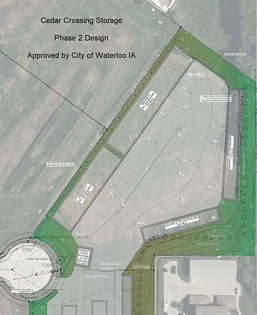 Beautiful self-storage complex located at the high-traffic intersection of Hwy 20 & Hwy 63 in Waterloo, IA. Phase 1 opened in October 2023 and offers a total of 100,880 SF of leasable space across 5.19 acres. The site includes 28,800 SF of indoor storage with 157 drive-up units (10x15, 10x20, 10x30), a 1,280 SF climate-controlled office/shop (owner-occupied, but leasable), and 70,800 SF of outdoor parking with 177 spaces (10x40). Total unit count: 335 + office/shop. Occupancy: 75.16% indoor 51.76% outdoor Security features include perimeter fencing, an automated gate, and high-definition security cameras. The site also benefits from a 15-year TIF package (90% for the first 10 years, then 60% thereafter). Financials and pro forma updated monthly by CPA. Seller financing available. Owners open to staying on for operations post-sale at below-market management rates. Excellent opportunity for investors or owner-users.