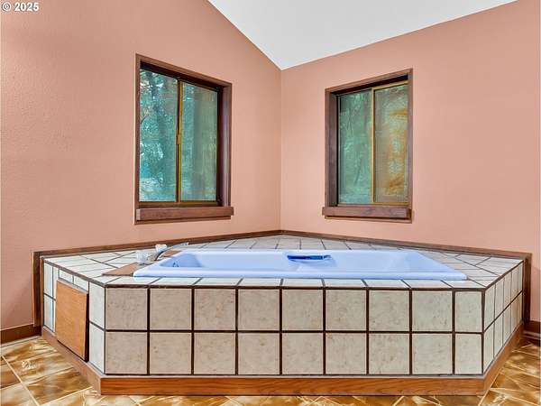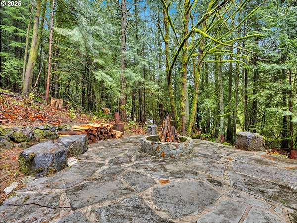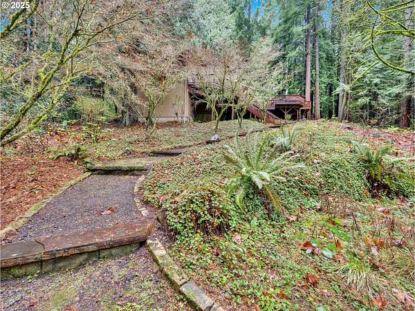 Your own forest retreat-quiet, secluded, and still just minutes from town and amenities. This 1979 home offers 2,663 sq. ft. of comfortable living space on just under 5 acres of lush, forested land that may be dividable and includes merchantable timber. A year-round creek with seasonal salmon runs winds through the property, creating a serene natural backdrop. Inside, enjoy a spacious layout featuring a sunken living room and sunken dining room, ideal for both everyday living and entertaining. Nearly 1,700 sq. ft. of multi-tiered decking extends your living space outdoors, offering room to dine, relax, and take in the surrounding woods. An exterior sauna and a covered spot for a hot tub add to the retreat-like feel. Practical features abound: a drive-thru garage, a detached garage, and plenty of room for hobbies, projects, or extra storage. The in-ground sprinkler system keeps the grounds easy to maintain. Located on a private dead-end road, the setting feels remote and peaceful while remaining close to town for convenience. A rare blend of privacy, natural beauty, and usable land-your forest escape is ready to welcome you.