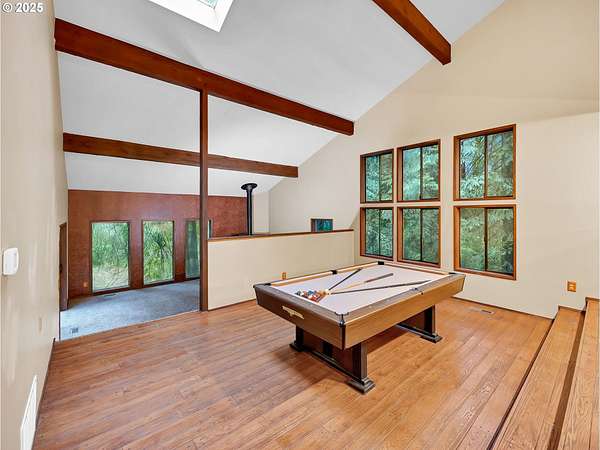 - Garage Door Opener, Hardwood Floors, High Ceilings, Skylight, Vaulted Ceiling, Wallto Wall Carpet, Washer Dryer, Wood Floors