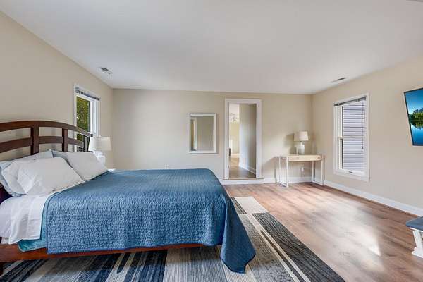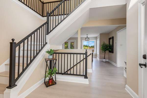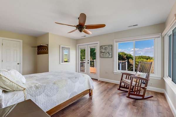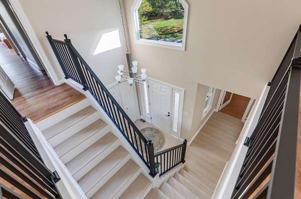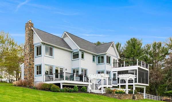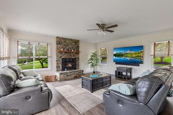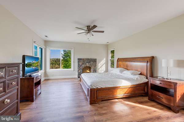 Majestic, panoramic mountain views and 3.23 lush acres set the tone for this beautifully updated 5-bedroom, 5-bath home offering over 4,300 sq ft of elevated living space. Enjoy the sweeping views from multiple outdoor spaces including a Trex screened porch, tiered decking with pergola and built-in seating, and a walk-out lower level opening to a fenced yard. The main level is thoughtfully designed for both everyday living and entertaining, featuring a renovated kitchen with quartz countertops, sleek cabinetry, and high-end appliances including a Thermador range, SubZero refrigerator, and Bosch dishwasher. The kitchen flows seamlessly into the family room, anchored by a stone surround gas fireplace. A main-level bedroom, full bath, and functional mudroom with laundry add flexibility. Upstairs, the primary suite offers a private retreat with its own fireplace, two cedar-lined walk-in closets, and a spacious bath with jetted tub and separate shower. Secondary bedrooms are generously sized, with access to the outdoor deck and well-appointed baths. A loft over the garage with a full bath provides versatile living space ideal for a bedroom, guest suite, game room, or home office. The finished walk-out lower level adds even more flexibility with a recreation area, kitchenette with refrigerator and sink, a bonus room suited for a guest space, theater room, or home gym, a full bath, and additional storage. Thoughtfully renovated over the past few years, updates include: hot water heater (2026), microwave/oven combo (2026), updated foyer with new railings and flooring (2026), well equipment (2025), washer and dryer (2025), HVAC systems (2024), 700 sq ft upper-level addition and garage expansion to a 3-car garage (2024), kitchen upgrade and family room addition (2024), sliding vinyl windows (2023), finished basement (2023), Trex decking, railings, and screened porch (2022), interior flooring, paint, and lighting (2022), and a 40-year roof (2022). A setting this special, where mountain views stretch endlessly and every intentional update has already been attended to, offers a rare opportunity to simply arrive and feel at home.