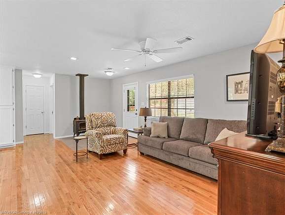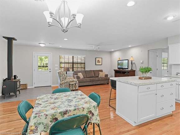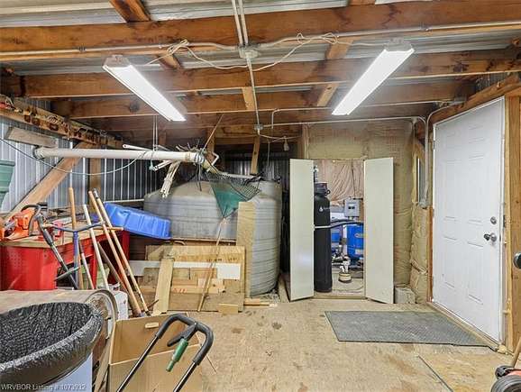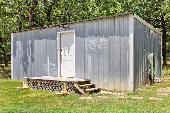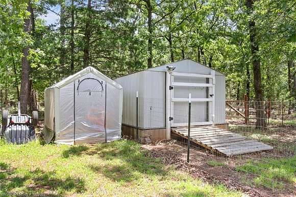Escape to your own private retreat with this charming 3 bedroom, 2 bathroom home set on 9 acres m/l of serene land. This property offers an ideal blend of seclusion and modern amenities, making it perfect for those seeking a peaceful lifestyle. The home features a comfortable layout with three bedrooms and two full bathrooms. Explore the expansive land, offering privacy and security. A tiny home/she shed/play house provides a versatile space for hobbies or relaxation. A shop building houses a complete water filtration system, ensuring clean and safe water for the household. A storage building includes a large deep freezer, which will remain with the property for added convenience. An in-ground storm shelter provides peace of mind during severe weather events, prioritizing your family's safety. Embrace sustainable living with a predator-proof chicken coop and a designated garden area, ideal for cultivating fresh produce. A mobile chicken pen offers flexibility for managing poultry. Included with purchase will be the refrigerator and two 500-gallon full propane tanks (not yet connected to the home), offering potential for off-grid living or enhanced energy efficiency. Enjoy the tranquility of the secluded location and the camaraderie of friendly neighbors, creating a warm and welcoming atmosphere. Experience the peace and quiet of country living with the potential for complete off grid living, or keep your modern amenities if you prefer. There is plenty of Space for hunting or watching the wildlife activity on this beautiful property.