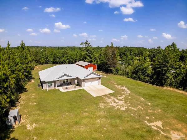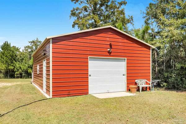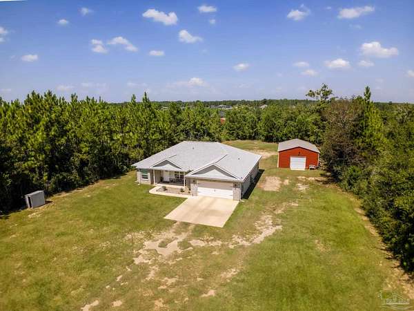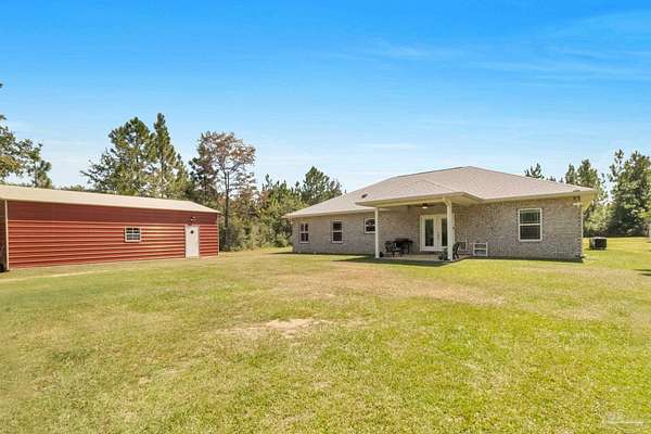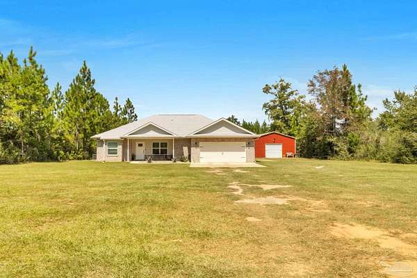 2.66 ACRES!! Welcome to this breathtaking brownstone brick custom-built home, completed in November 2024, located on a gorgeous piece of private acreage in the highly sought-after Pace, Florida. With impeccable attention to detail, this home blends modern luxury with practicality, offering the perfect retreat for both relaxation and entertainment. The home comes equipped with a smart doggy door, ensuring convenience for your furry family members, while the entire home is designed with modern, easy-to-use technology that enhances daily living. The chef's kitchen features sleek granite countertops, perfect for meal prep, with ample storage and a layout that flows seamlessly into the rest of the home. The spacious master suite offers a private sanctuary, complete with oversized his and her walk-in closets. A spa-like master bath provides the ultimate place to unwind after a long day. The property includes a 24x36 metal building with electric, providing ample space for a workshop, storage, or additional vehicles. The possibilities are endless! Also included with this home is a 30 AMP Hookup as well as sewage for an RV! Situated just a short drive from Pensacola Beach, you'll have quick access to white sandy shores and the Gulf Coast's stunning waters. Plus, the natural beauty of Blackwater River is right at your doorstep, offering endless opportunities for outdoor recreation, from kayaking to hiking. Whether you're looking for a peaceful retreat or a place that's close to everything, this home provides the best of both worlds. Schedule your tour today and see for yourself why this is the ideal place to call home! Seller will provide a 1 year Home Warranty and will contribute to closing costs. Ask an agent for details.