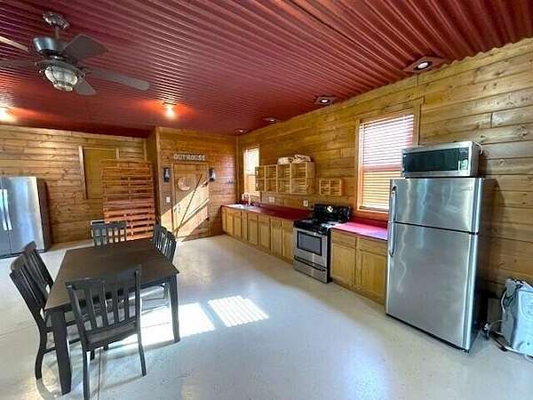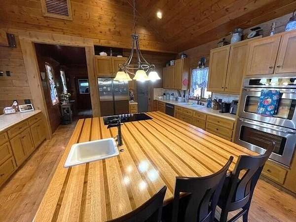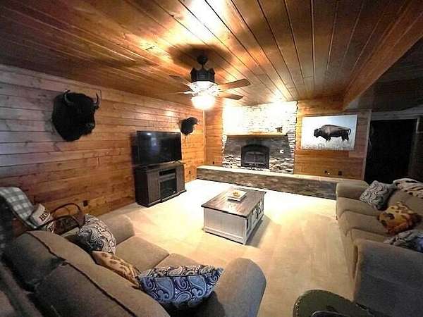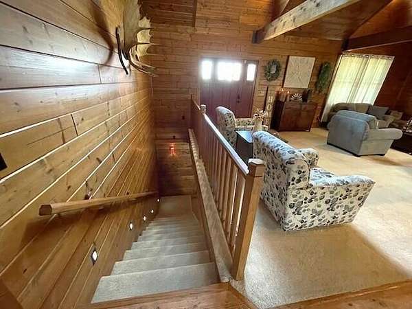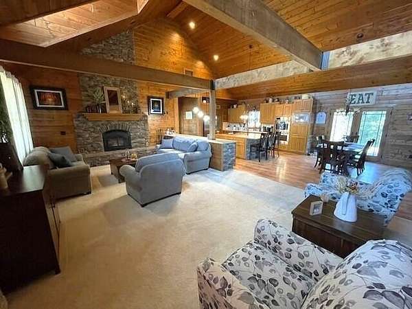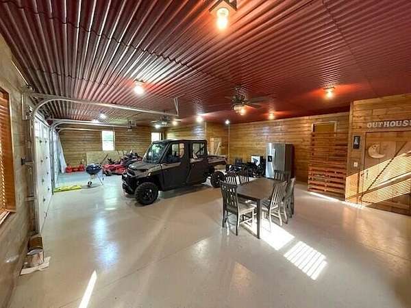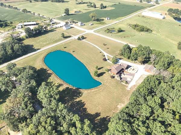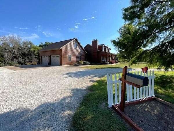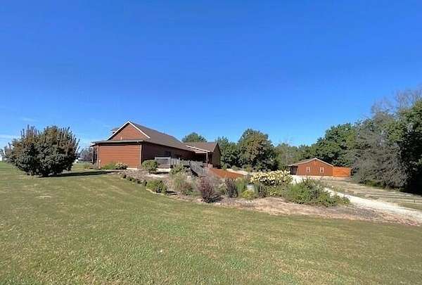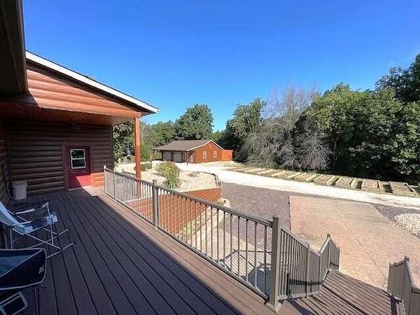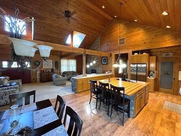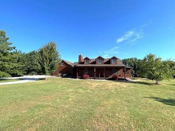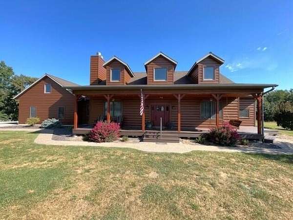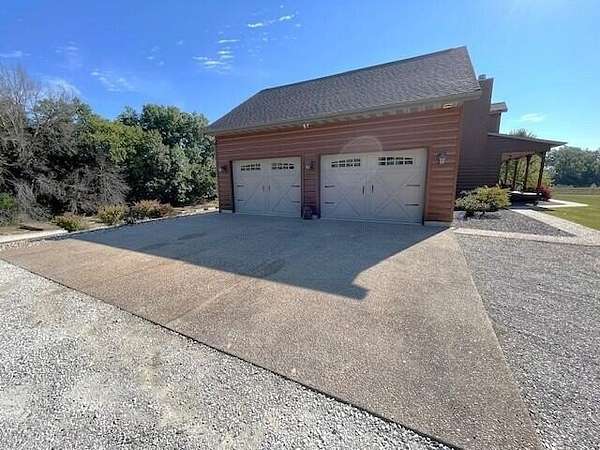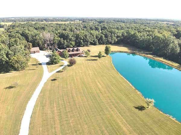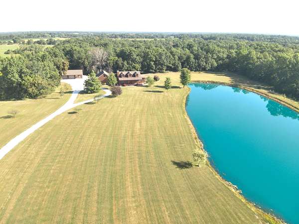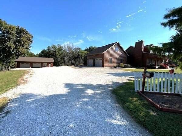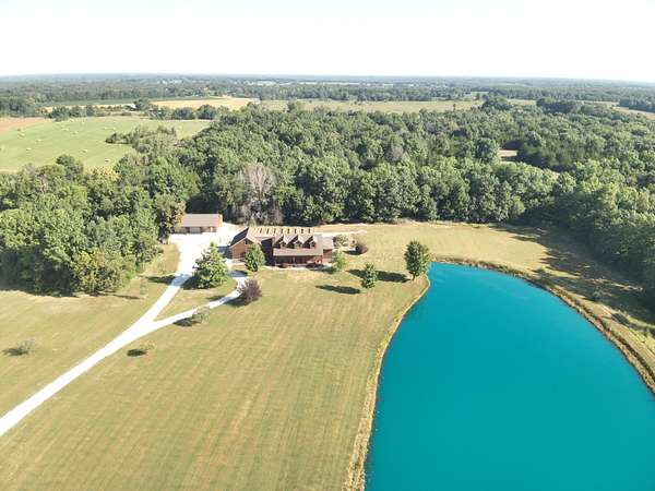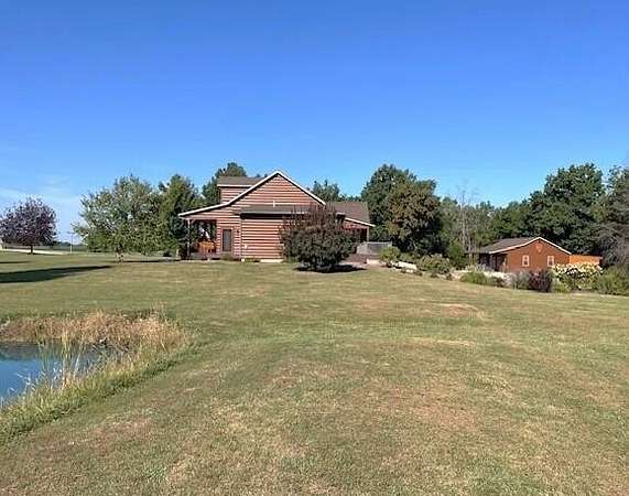 Est $4,187/moCustom lodge-style home on 8.4 acres with a 2-acre stocked pond. Features Amish-milled wood siding, vaulted ceilings, quartersawn cabinets, butcher block countertops, and rock fireplaces. Finished basement includes extra living space, kitchenette, 2 bedrooms, and a bath. Heated/cooled 32x28 garage and 48x30 shop with bath and kitchenette. Recent updates: TruLog metal siding, composite decks, and high-impact roof. Easy access to Macon and Moberly.