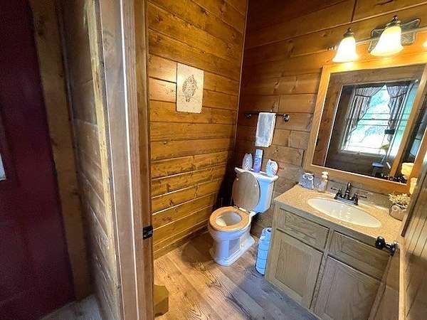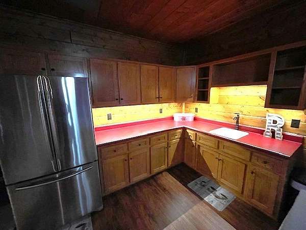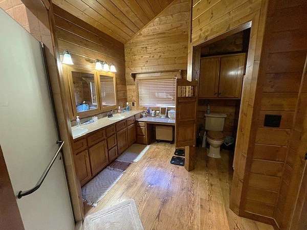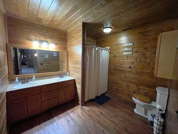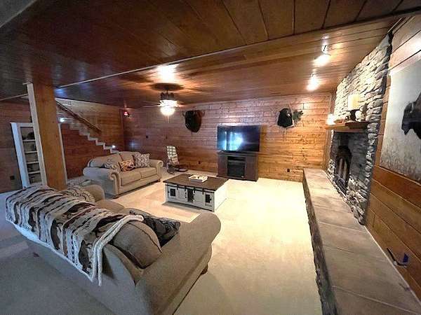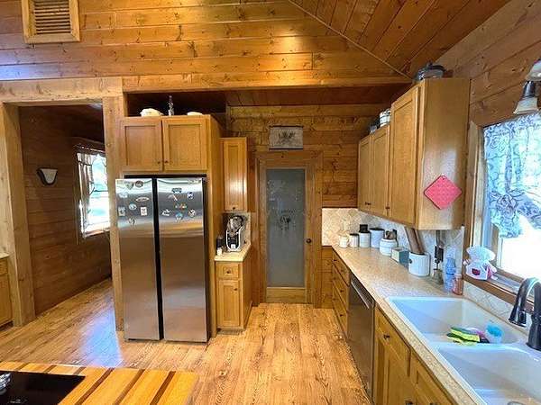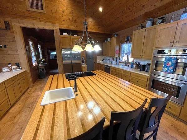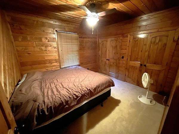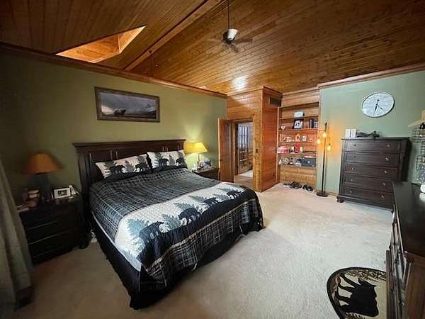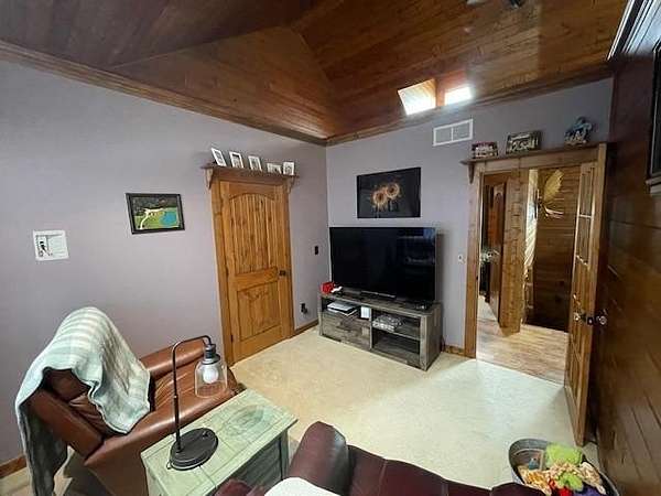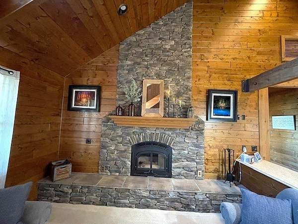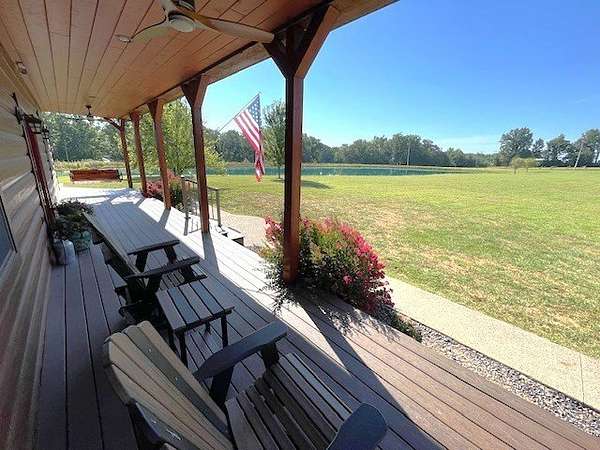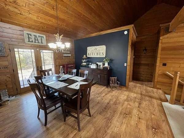 Est $3,677/moCustom lodge-style home on 8.4 acres with a 2-acre stocked pond. Features Amish-milled wood siding, vaulted ceilings, quartersawn cabinets, butcher block countertops, and rock fireplaces. Finished basement includes extra living space, kitchenette, 2 bedrooms, and a bath. Heated/cooled 32x28 garage and 48x30 shop with bath and kitchenette. Recent updates: TruLog metal siding, composite decks, and high-impact roof. Easy access to Macon and Moberly.