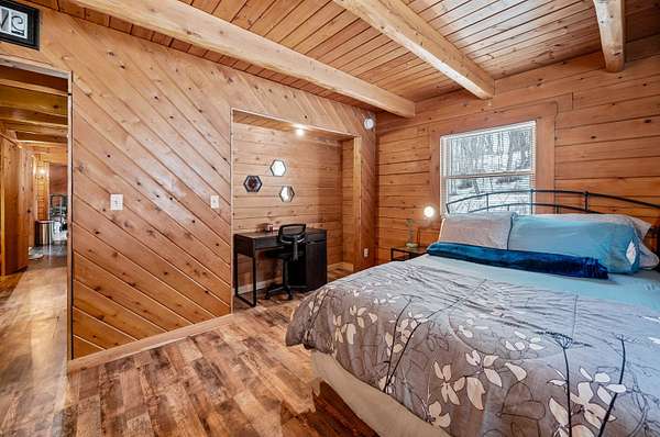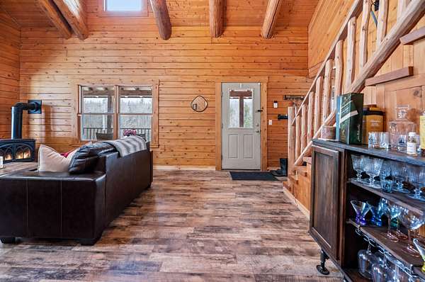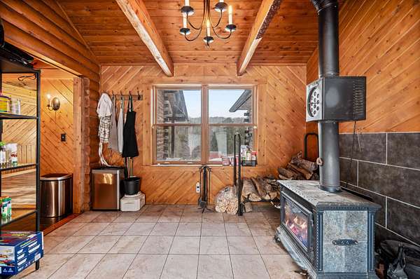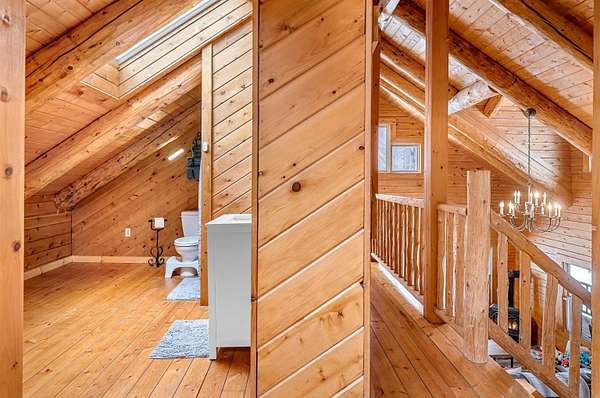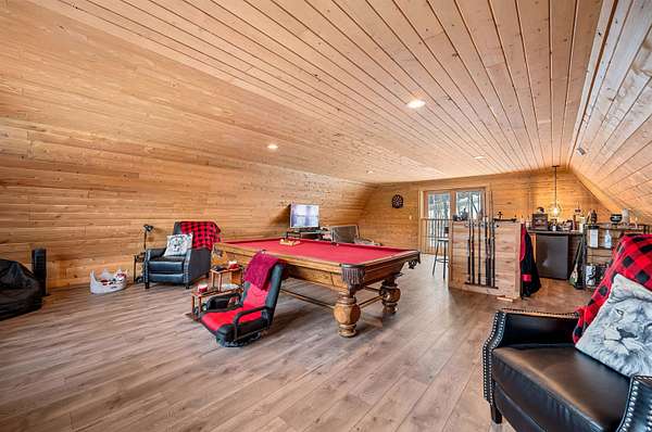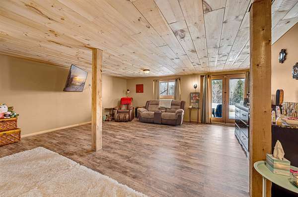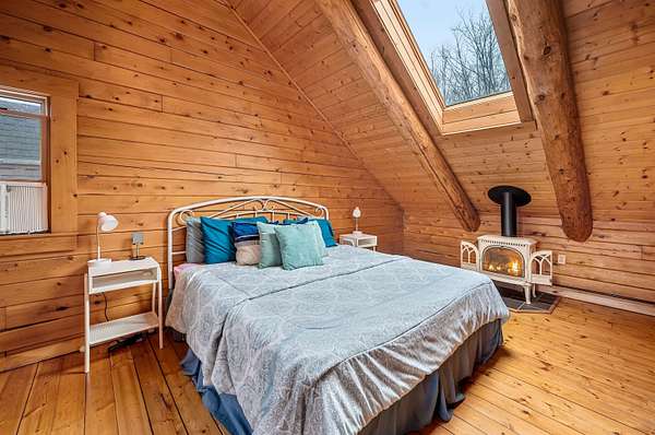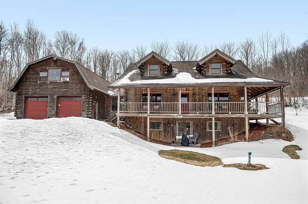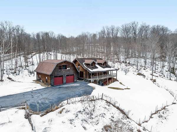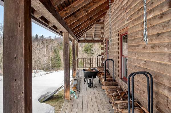 Live the Vermont dream in this beautiful pine log home with cathedral ceilings set on 13.98 private acres with long-range views and the kind of quiet that makes the covered front porch your favorite place to start and end the day. Inside, soaring ceilings, exposed beams, skylights, and radiant heat create a warm, inviting atmosphere that feels both expansive and cozy. The flexible layout includes 3 to 4 bedrooms, 4 baths, multiple gathering spaces, a billiard room, and a comfortable family room, giving you plenty of space to spread out, host, work, or unwind. Two propane fireplaces and a woodstove add extra charm, while recent flooring updates bring a fresh feel to the home. Above the heated 2-car garage is a separate 30 x 20 bonus space with a wet bar, ideal for entertaining, creative pursuits, guest overflow, or a private retreat. The garage itself, currently used as a gym, also features radiant floor heat and offers excellent versatility. Whether you are dreaming of gardens, hobby animals, or simply more room to breathe, this beautifully maintained Vermont country home delivers privacy, comfort, and the kind of setting that makes everyday life feel like a getaway.