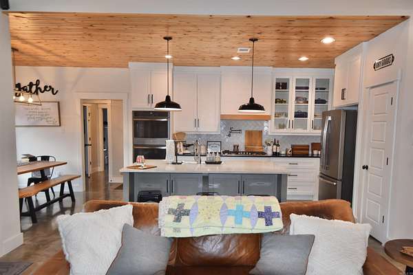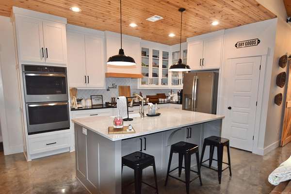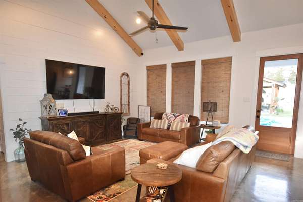 Awesome modern custom home on 13 beautiful acres in the Glen Rose area, built by Schrader Homes. This stunning property features 3 bedrooms, 2½ baths, and 2,289 sq ft with quality craftsmanship and great amenities inside and out. Step inside to find high ceilings and an impressive 8' entry door creating a spacious, open feel. The kitchen features granite countertops, double ovens, and plenty of space for cooking and entertaining. The primary suite includes a beautiful tile shower along with stylish fixtures throughout the home. Complete with a built in safe room. Outside you’ll find the perfect setup for relaxing or entertaining with a heated in-ground pool and an outdoor living area featuring a brick fireplace with a built-in pizza oven. The 13 acres also include a nice pond, adding to the peaceful setting. Need space for hobbies or storage? The property includes a 40' x 60' Red Iron shop with electricity, an additional 16' x 40' lean-to. A concrete driveway and well-maintained grounds complete this incredible property. If you're looking for a beautiful custom home with acreage, pond, pool, and shop space in the Glen Rose area, this is the one!