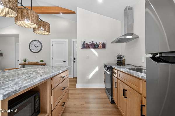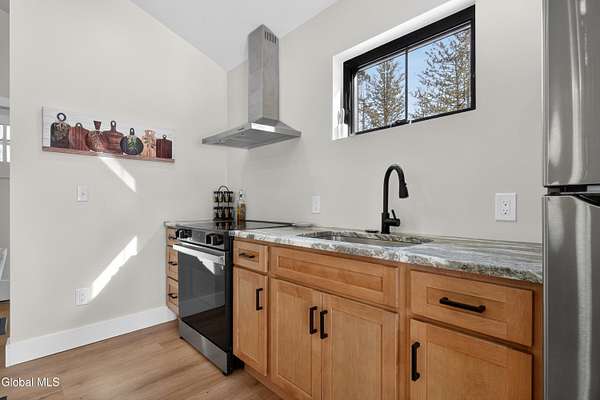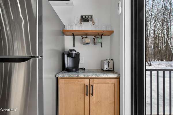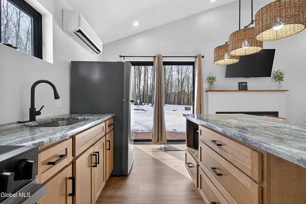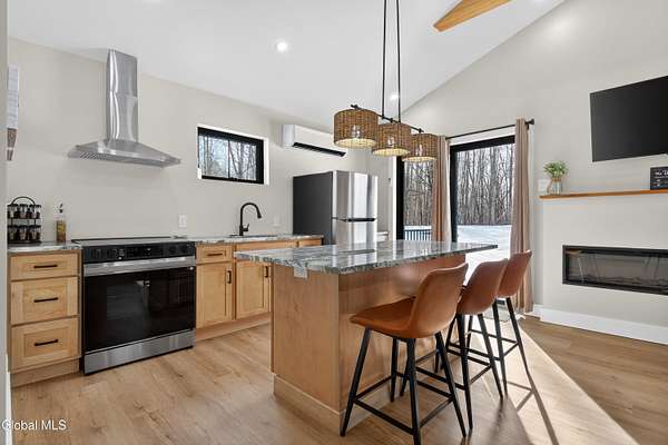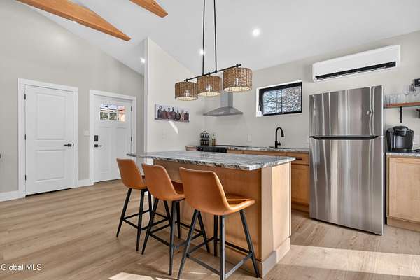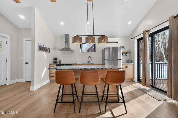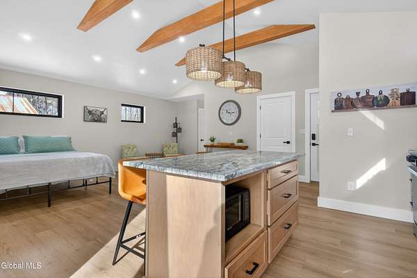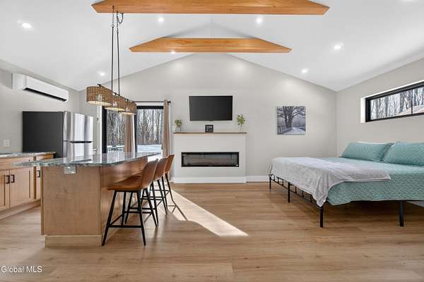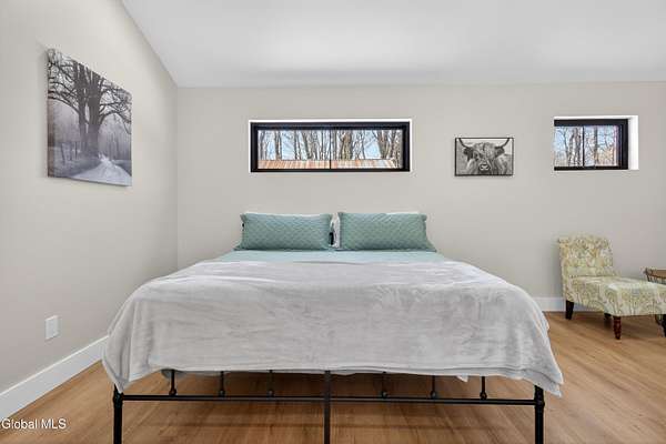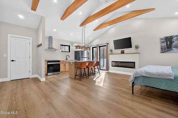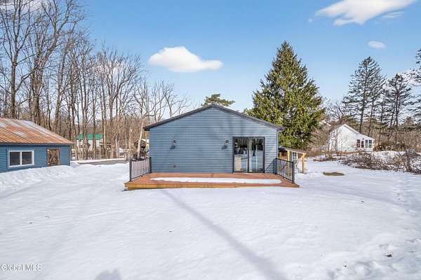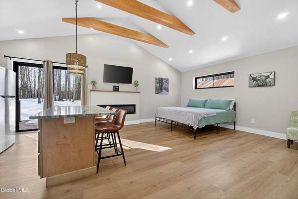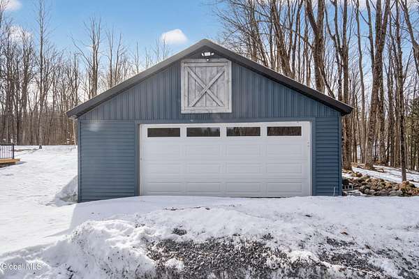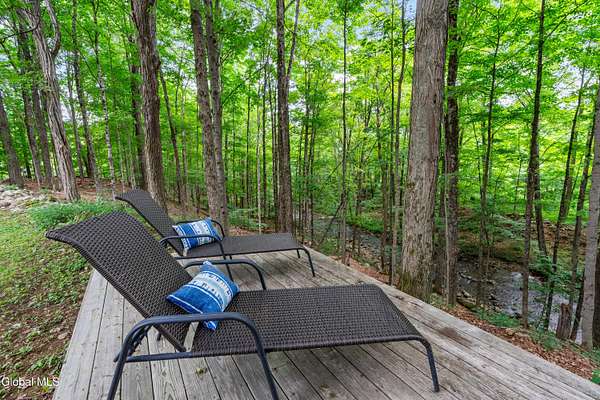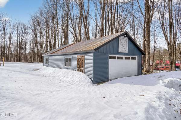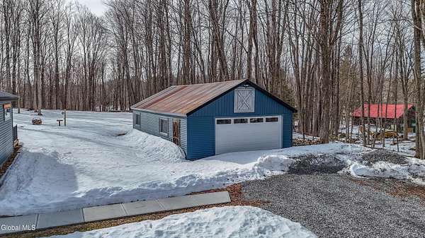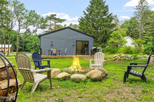 OFFER DEADLINE SUNDAY 3pm Set on 2 private acres in the Saratoga School District, this fully renovated studio-style home offers a unique blend of privacy, modern comfort, and natural surroundings, with the Kayaderosseras Creek right in your backyard. Inside, the home features a bright, open layout with a beautifully updated kitchen, island seating, stainless appliances, and a thoughtfully designed living space that flows seamlessly into a separate sleeping area. The updated bathroom, in-unit laundry, and efficient heating and cooling make this a comfortable, low-maintenance property year-round. The outdoor setting is what truly sets this property apart. Backing directly to the creek, the property provides a peaceful, scenic environment rarely found at this price point. A platform overlooking the water creates the perfect spot to relax and enjoy the outdoors, while the surrounding acreage offers privacy and flexibility for future use. The 40x28 detached garage adds significant value, offering ample space for storage of boats, jet skis, or recreational equipment, as well as potential for workshop or hobby use. In addition to its lifestyle appeal, the property also presents a compelling investment opportunity. Currently operating as a brand new short-term rental, it is just beginning to generate income, with estimated rates of approximately $200/night in the off-season and up to $280/night during peak summer months, making it an attractive option for those looking to offset ownership costs or expand a rental portfolio. Whether you're seeking a private retreat, a low-maintenance home, or a property with income potential, this one offers a rare combination of setting, versatility, and location.