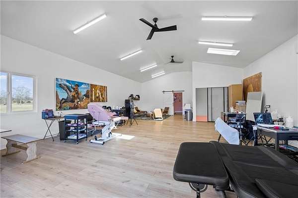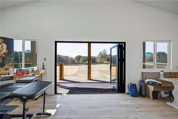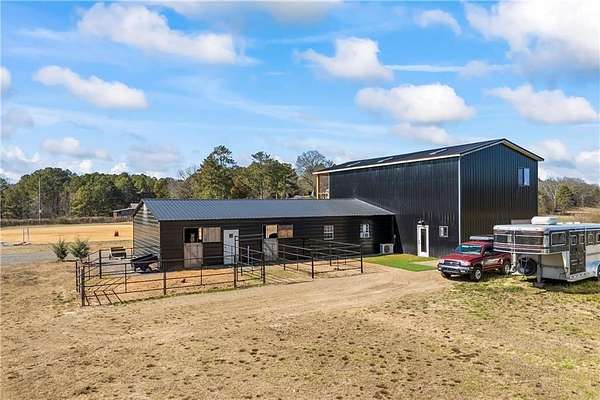 BUYER COULD NOT PRODUCE FUNDS so it is your lucky day this one is back and priced BELOW appraisal!! Walk into instant equity!! Now featuring the main living area, large upscale custom kitchen, and open concept dining room all downstairs. With the addition of a custom vent hood, large island with built in shelves, a huge walk-in pantry and an eat-at bar this kitchen will be an entertainers dream! Upstairs you will find another loft/family room for those cozy nights staying in, the primary owner's suite, as well as an additional room- perfect for a home office or flex room! Set on nearly 13 acres, this turnkey equestrian property is where high-end design meets ultimate functionality. Fully perimeter-fenced, it features four cross-fenced paddocks with brand-new RAM fencing and an additional large pasture with wire fencing-ready for horses, livestock, or your vision. Step through the custom 8'x8' black steel double doors with frosted glass into the barndominium style home. The hand-painted Venetian plaster walls, built-in custom features, and 10-foot ceilings create an airy, sophisticated feel downstairs. Massive 7'x3' picture windows flood the space with natural light, making the main living area pop with the convenience of a half bath right there. At the back, a striking 10'x10' insulated carriage door with stained chevron wood adds a bold, custom touch. Upstairs, soaring 15-foot vaulted ceilings elevate the space. The primary suite is designed for comfort, offering a large walk-in closet, double vanity, and a large walk-in shower all while blending modern and sleek finishes in every corner. Designed for serious equestrians, the barn is fully equipped with six stalls, all featuring auto waterers and RAM stall mattress systems. Each stall has space for a private run out paddock and the barn also includes an indoor wash rack, feed room, and tack room. A separate hay storage area with a garage door makes loading and unloading seamless, while an interior finished section of the barn is complete with a full bathroom. (PLEASE NOTE: Drywall and insulation are now complete in the barn since pictures have been taken). Above the barn, a versatile living space is designed to impress. A large open room with accordion-style glass doors opens the full length of the wall to a viewing deck overlooking the lighted sand arena. Whether you need a home office, art studio, or future living space, this area is ready to be customized. Two additional rooms serve as guest suites or future bedrooms. Additional Features include: Detached two-car garage, storage shed for extra equipment or workspace, lighted sand arena that is perfect for training or evening rides and the added bonus of a round pen with M10 footing. This property is turnkey for equestrians and ideal for those who appreciate high-end finishes, modern design, and flexible living spaces-all in a stunning rural setting.