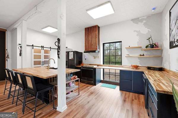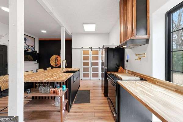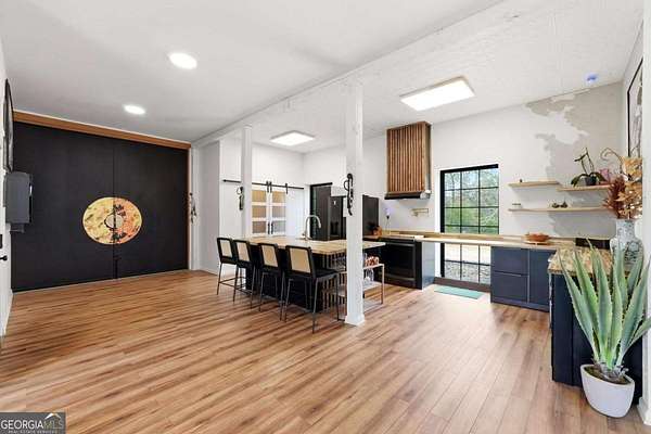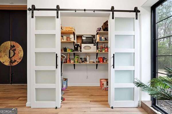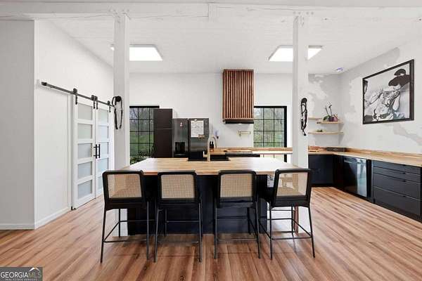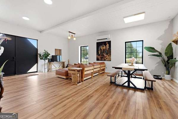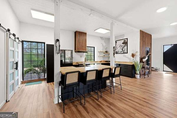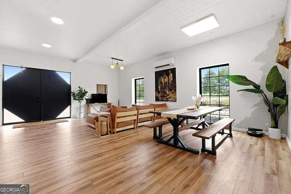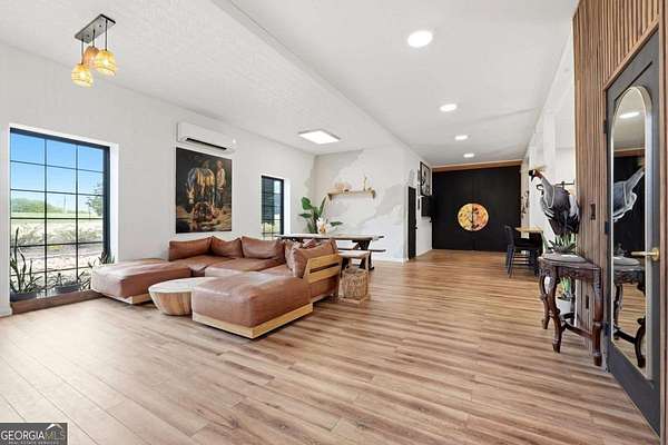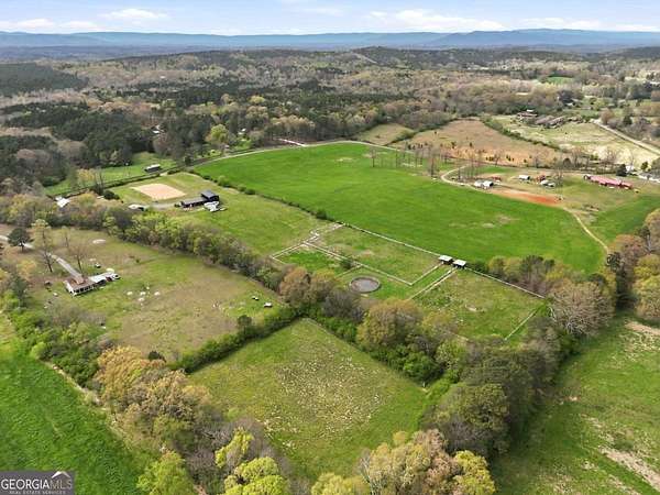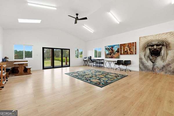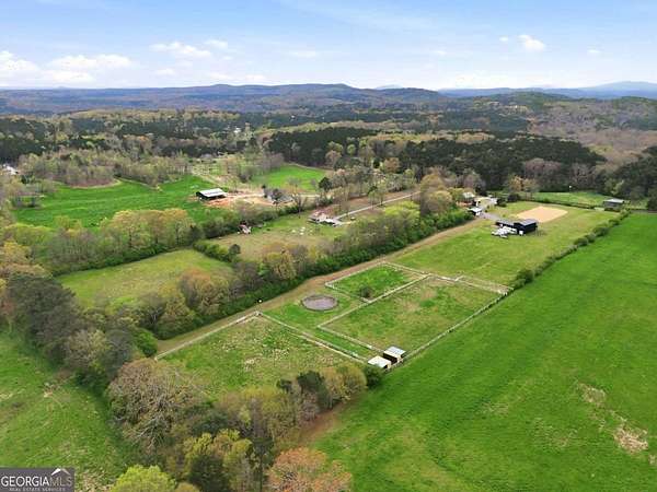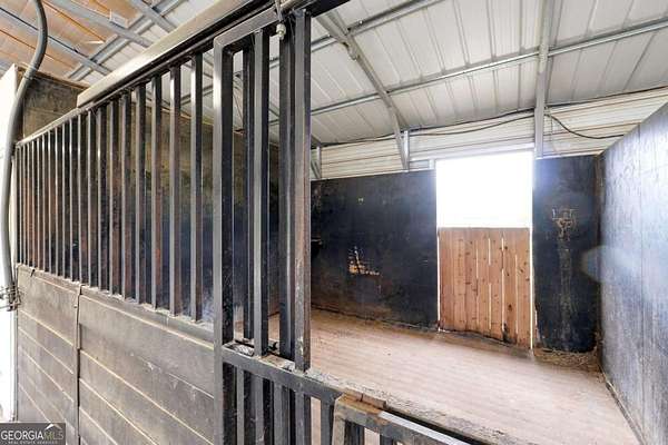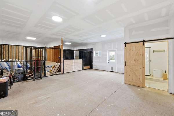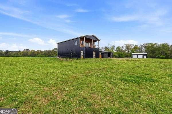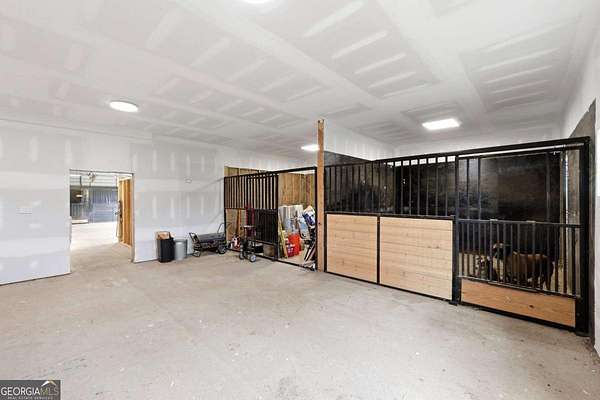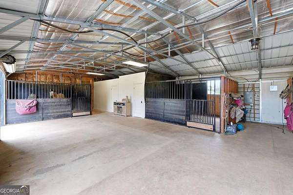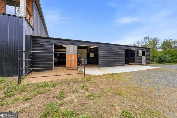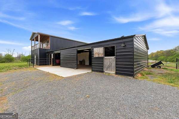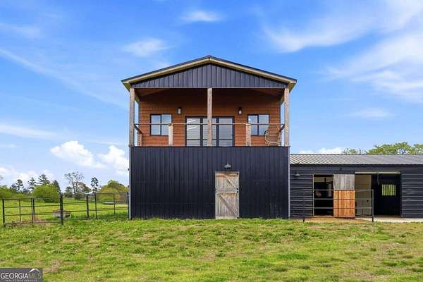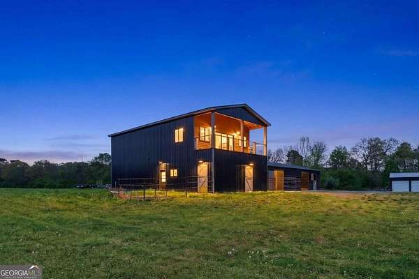 Priced below appraisal, you are walking into instant equity! Set on nearly 13 acres, this turnkey equestrian property is where high-end design meets ultimate functionality. Fully perimeter-fenced, it also features four cross-fenced paddocks with brand-new RAM horse-safe fencing and an additional large pasture with wire fencing-ready for horses, livestock, or your vision. Step through the custom 8'x8' black steel double doors with frosted glass into the barndominium-style home. The main living area is open-concept with a large upscale custom kitchen, dining room, and living room all on the main level. With the addition of a custom vent hood, a large island with built-in shelves, a huge walk-in pantry, and an eat-at bar, this kitchen will be an entertainer's dream! The hand-painted Venetian plaster walls, built-in custom features, and 10-foot ceilings create an airy, sophisticated feel downstairs. Massive 7'x3' picture windows flood the space with natural light, making the main living area pop and has the convenience of a half bath right there. At the back, a striking 10'x10' insulated carriage door with stained chevron wood adds a bold, custom touch. Upstairs, soaring 15-foot vaulted ceilings elevate the space. You will find another loft/family room for those cozy nights staying in, the primary owner's suite, as well as an additional room-perfect for a home office or flex room! The primary suite is designed for comfort, offering a large walk-in closet, double vanity, and a large walk-in shower all while blending modern and sleek finishes in every corner. Designed for serious equestrians, the barn is fully equipped with six stalls, all featuring auto waterers and RAM stall mattress systems. Each stall has space for a private run-out paddock, and the barn also includes a wash rack, feed room, and tack room. A separate hay storage area with a garage door makes loading and unloading seamless, while an interior finished section of the barn is complete with a full bathroom. Above the barn, a versatile finished space is designed to impress. A large open room with accordion-style glass doors opens the full length of the wall to a viewing deck overlooking the lighted sand arena. Whether you need a home office, art studio, or future living space, this area is ready to be customized. Two additional rooms serve as guest suites or future bedrooms. Additional property features include a detached two-car garage, a storage shed for extra equipment or workshop, a lighted sand arena that is perfect for training or evening rides, and the added bonus of a round pen with M10 footing. This property is turnkey for equestrians and ideal for those who appreciate high-end finishes, modern design, and flexible living spaces-all in a stunning rural setting.