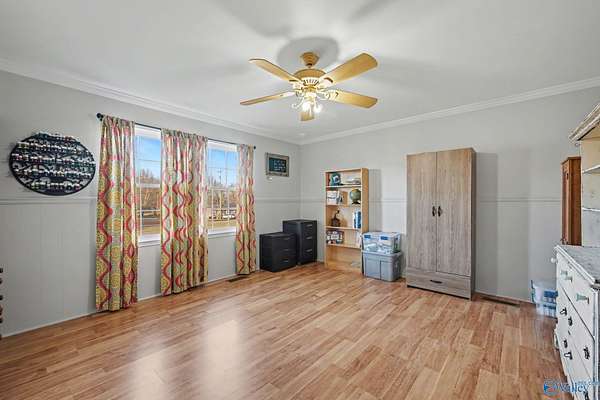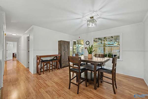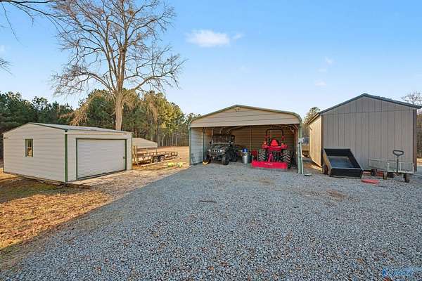 Coming Soon-Peaceful country living with room to roam! This full brick ranch in Hartselle sits on 15 beautiful acres and welcomes you with a circular driveway, 2-car garage, workshop with water and electric, detached storage shed and carport, both with electricity. With ample parking, the property is ideal for entertaining, hobbies, and RV or boat storage. Inside, you'll find two oversized bedrooms, two full baths, smooth ceilings, and wood flooring throughout. A spacious sunroom offers stunning views of the surrounding land, while the large laundry room features built-ins and countertops for added convenience. A rare opportunity for space, privacy, and versatility!