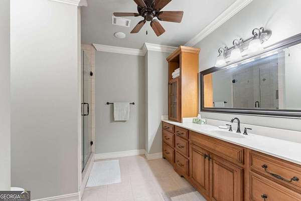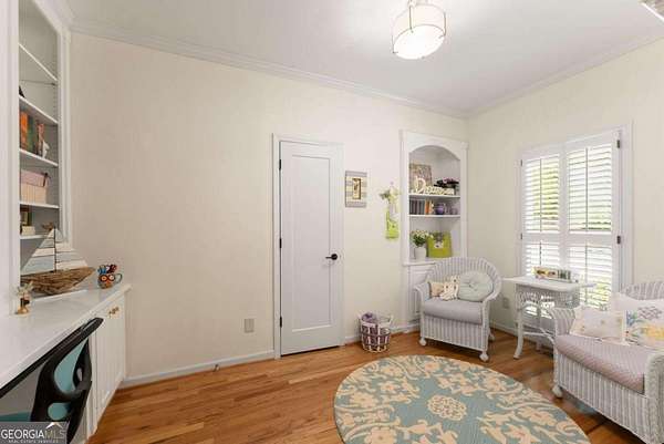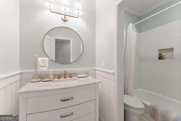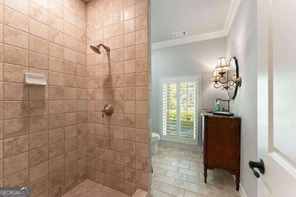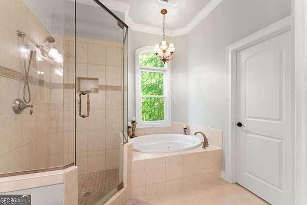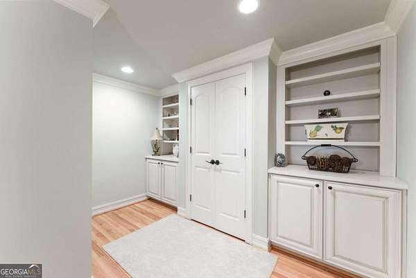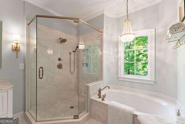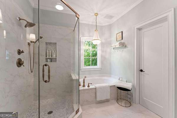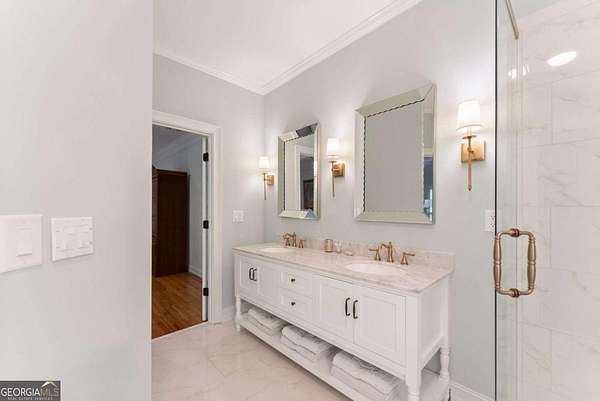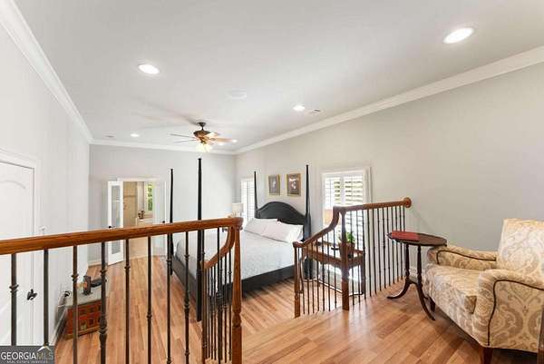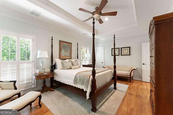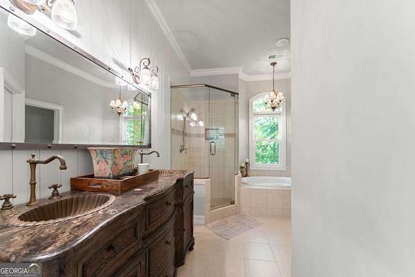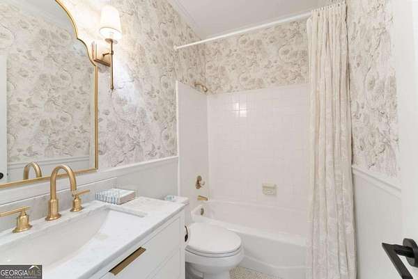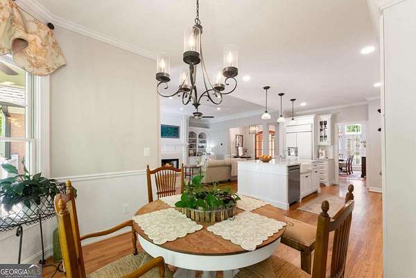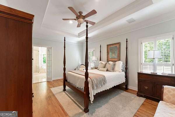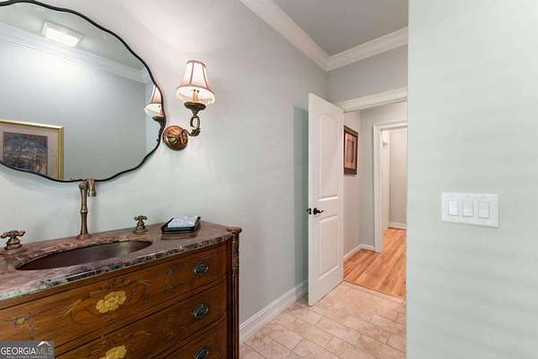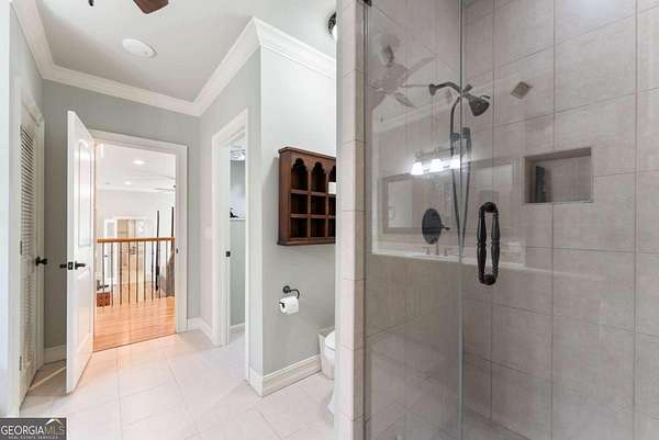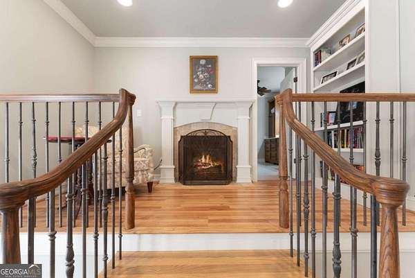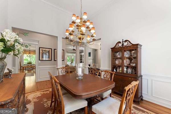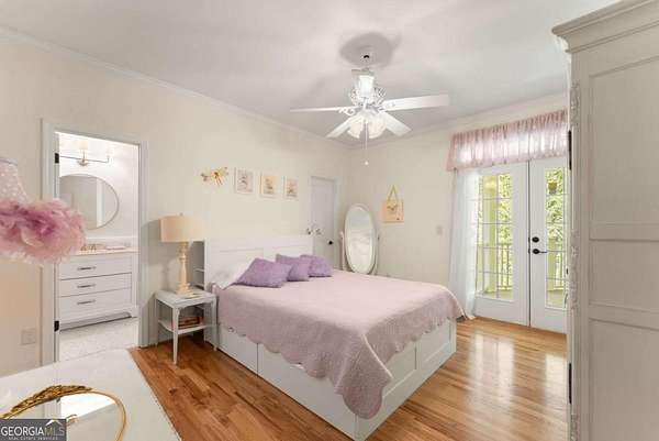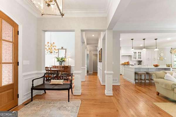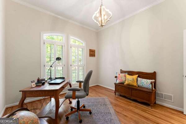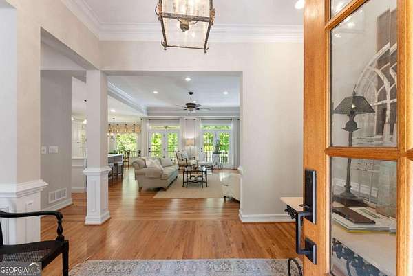 Homes with this combination of land, location, and layout are rarely available. The floor plan alone sets the tone. Designed for ease and longevity, the ranch layout places the primary suite on the main level alongside two additional bedrooms and bathrooms - an increasingly rare configuration. The home has been thoughtfully updated throughout, with full kitchen and bathroom renovations that reflect timeless, classic design. The kitchen features quartz countertops, KitchenAid appliances, and custom cabinetry, opening into light-filled living spaces anchored by a fireplace in the main living room - a natural gathering point for everyday living and entertaining. A second primary suite on the terrace level - complete with high-end finishes and a fireplace - adds flexibility for guests or multigenerational living. The finished terrace level also includes a theater room, den with fireplace, kitchenette, an additional laundry hookup, and abundant storage. The grounds are where this property earns its place. Set on over three acres, the land has been carefully shaped into a private sanctuary with walking and biking trails that lead to a creek feeding a peaceful pond. Mature landscaping and natural wildlife create a sense of retreat that's genuinely hard to find this close to town. Minutes from Gainesville, Lake Lanier, and Chattahoochee Country Club - private acreage with none of the tradeoffs.
