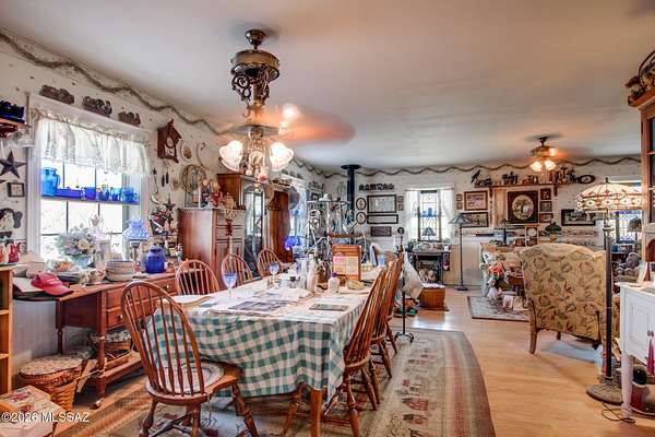 Est $4,379/mo5,300+ sq. ft. custon estate captures Mid-West charm, situated on 6.5 fully fenced acres. This property holds two seperate kitchens, tow dining rooms, two fireplaces, and ample living space. Offering a versatile layout that could easily be converted into four bedrooms or serve as a comfortable multi-family esidence. New AC units and a fenced pasture area plus corral/dedicated horse facilities. Includes a detached four-car garage with an intergrated storage/workshop! Complete with a large L-shaped covered deck and metal roofing.