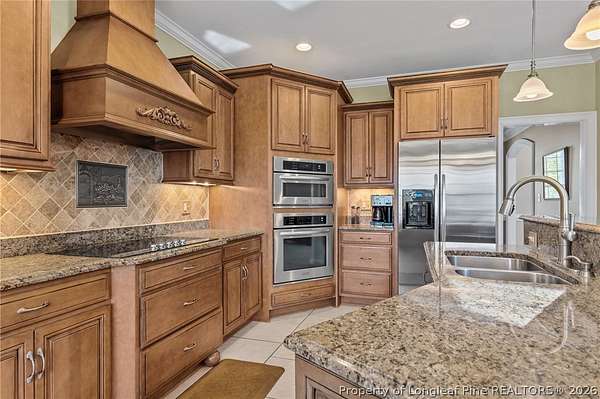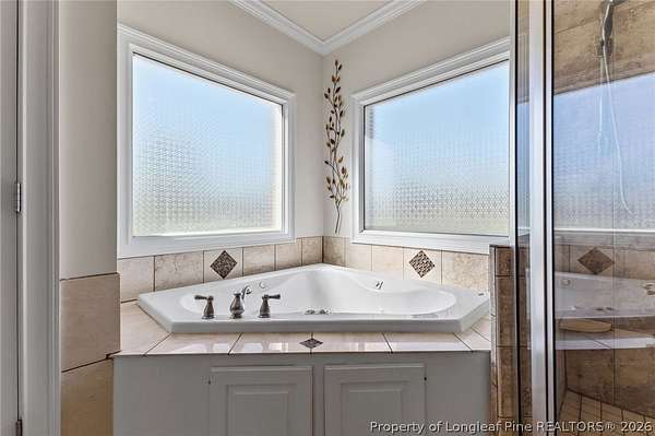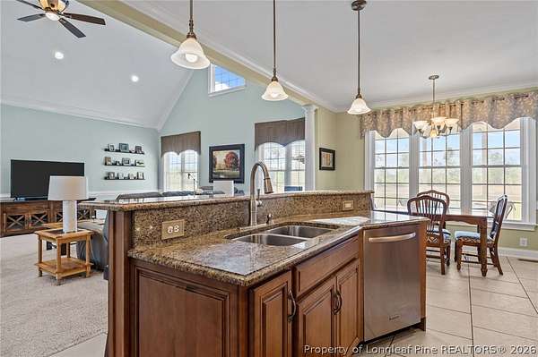 - Breakfast Area, Built In Features, Cathedral Ceilings, Ceiling Fans, Crown Molding, Dining Area, Double Vanity, Eat In Kitchen, Entrance Foyer, Granite Counters, High Ceilings, Jetted Tub, Kitchen Island, Primary Downstairs, Separate Formal Dining Room, Separate Shower, Tub Shower, Vaulted Ceilings