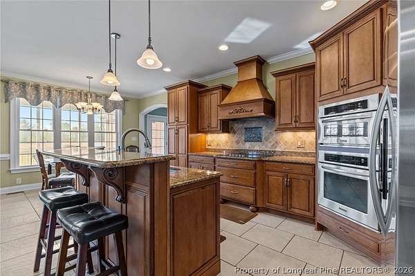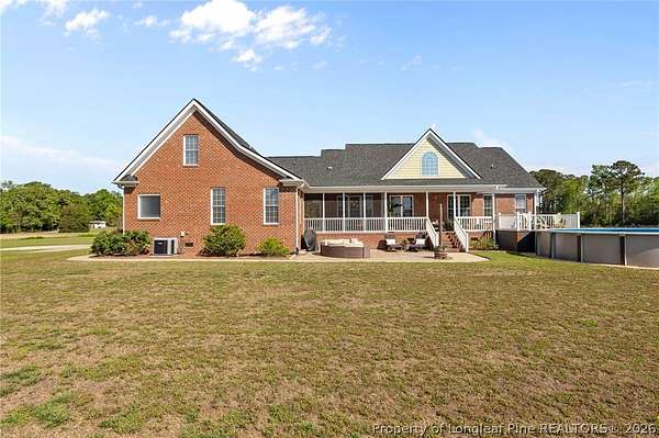 Set on over 3 acres of open countryside, this stately brick home delivers space, privacy, and standout craftsmanship at every turn. From the moment you arrive, the classic front porch, dormer-lined roofline, and expansive setting create a true estate-style presence. Inside, you're greeted by a grand foyer with soaring ceilings, abundant natural light, and detailed trim work that immediately sets the tone. The main living area features vaulted ceilings, custom built-ins, and a seamless flow into the heart of the home-a beautifully designed kitchen complete with rich cabinetry, granite countertops, double wall ovens, and a striking custom range hood. A formal dining room with elegant trim and a tray ceiling provides the perfect setting for hosting, while the split floorplan offers privacy with a spacious primary suite featuring a tray ceiling and a well-appointed en-suite bath with a tiled walk-in shower and soaking tub. Upstairs, an additional bedroom, full bathroom, and oversized bonus room offer incredible flexibility-ideal for guests, a media space, or multi-purpose living. Step outside and take in the full lifestyle this property offers. Relax on the screened-in porch, entertain on the expansive patio, or unwind by the above-ground pool with its new deck. With a chicken coop already in place and wide-open acreage surrounding you, this property embraces true country living. Additional features include a two-car garage, extended parking pad, and room to expand, garden, or simply enjoy the space and privacy that's hard to find.