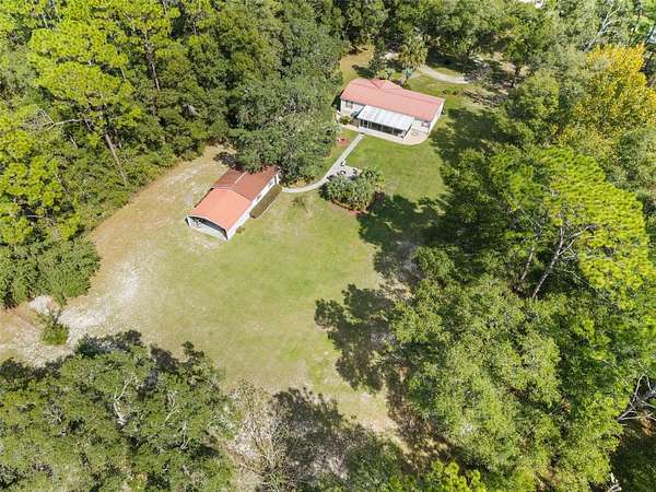 The main home at 3570 SW 186th Ct is beautifully maintained and move-in ready. 3 bed, 2 bath, 1500+ sq ft under air. It features a bright, open layout, spacious kitchen, screened-in back porch, cozy fire pit area, and a massive detached, enclosed, and air-conditioned workshop/garage with a covered carport. The manicured yard feels like your own private park--ideal for relaxing or entertaining.