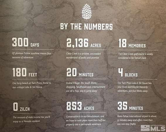 This site is almost a perfect half-acre square - a fitting homesite for your mountain sanctuary. About half-way up Knob Point, you'll enjoy views west to Duane Bliss Peak and east toward the #1 rated private golf course in Nevada. Clear Creek Tahoe is Northern Nevada's most exciting new mountain community just minutes from Lake Tahoe. Owners are enjoying world-class golf, overnight cottages, private hiking trails, swim and tennis center, and a full-service day-use Lake and Ski House. Situated on 1,576 unspoiled acres, home sites here are as dramatic and diverse as the land itself, where the contours, elevation changes and character of the land offer spectacular views in every direction. At Clear Creek Tahoe, their vision is bringing together physical amenities creating a stage for a magnificent life experience. The nationally acclaimed Coore & Crenshaw golf course is fully mature and ranked number one residential course in Nevada. The Lake and Ski House allow members to enjoy 180' of sandy beach, water sports and shuttle service to Heavenly Ski Resort, and our newly completed Summit Camp offers swimming tennis, hot tub, water slide, bocce and more. Additional amenities include a spacious Clubhouse with workout/wellness facility that is open year-round. A Social Membership to the Club is included in the purchase price.