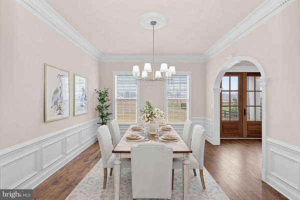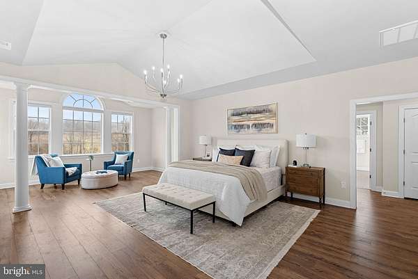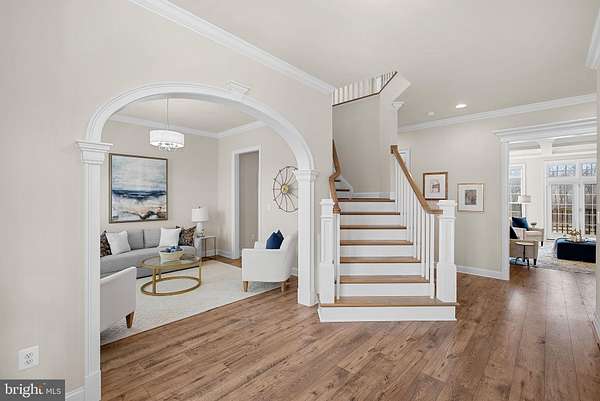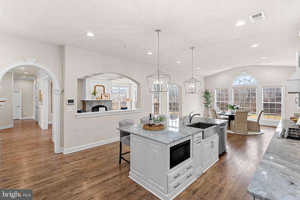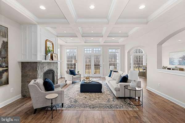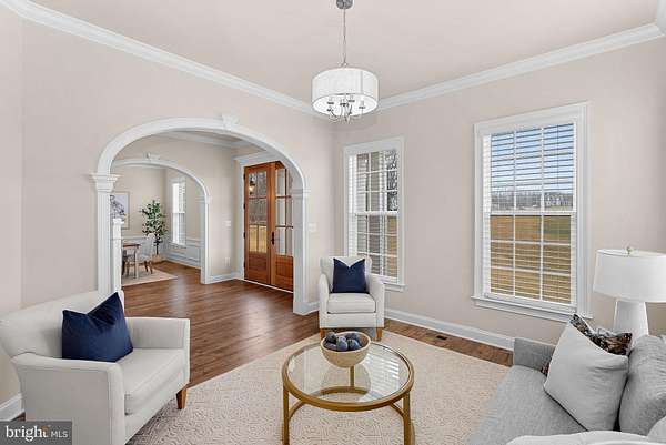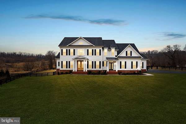 Set on 16 breathtaking conservancy acres in Purcellville, this exceptional home offers timeless architecture, refined interiors, and the peaceful lifestyle Western Loudoun is known for. With HOA approval for horses and surrounding protected land, the property offers rare privacy, open space, and scenic pastoral views. A long private drive leads to the stately white colonial, where a welcoming front porch and sweeping countryside vistas create striking curb appeal. Built by renowned Carrington Homes, the Kendall Lane model is celebrated for its craftsmanship, elegant design, and thoughtfully designed living spaces. Inside, a gracious foyer welcomes you with rich hardwood floors, detailed trim work, and a beautifully crafted staircase. Arched openings, elegant moldings, and beautiful solid wood French doors that frame views of the surrounding landscape add warmth and architectural character throughout the home, while expansive living areas create an effortless flow between spaces. At the heart of the home is a stunning chef's kitchen designed for both entertaining and daily life. Featuring expansive quartzite countertops, custom white cabinetry, double wall ovens, a statement range hood, and an oversized center island with seating, the kitchen opens seamlessly to the family room and sun-filled morning room where walls of windows frame tranquil views of the surrounding acreage. The family room is a true showpiece, featuring an elegant coffered ceiling, a beautiful fireplace that anchors the space, and large windows that fill the room with natural light. A main-level bedroom with a full en suite bath provides the perfect space for guests, extended family, or a private home office. Upstairs, the luxurious primary suite offers a true retreat, complete with a tray ceiling, hardwood floors, and a spacious sitting area highlighted by an elegant arched window overlooking the property. The spa-inspired primary bath features dual vanities, a freestanding soaking tub centered beneath an arched window, and a large walk-in shower with elegant tile surround. The finished lower level provides additional space for recreation, entertaining, fitness, or media. This remarkable property offers the rare combination of luxury living, protected land, and countryside charm-just minutes from Purcellville's charming downtown, wineries, breweries, and farm markets.