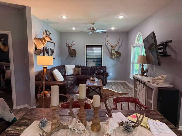 Discover this stunning 3-bedroom, 3-bath home featuring a convenient 2-car carport. The residence boasts modern amenities including new appliances, a cozy fireplace, remodeled bathrooms, and fresh flooring throughout. Enjoy leisure time in the game room or relax on the charming porch overlooking the serene pond. With a 3.6-acre stocked pond and an electric well, fishing is always available, and water levels are easily maintained. Located just minutes from town-20 minutes to Monroe and 10-15 minutes to the META site-this fenced acreage offers endless possibilities. Whether you envision a mini farm with cattle, horses, and chickens, or development opportunities like an RV park, trailer park, duplexes, condos, or apartments, this property has you covered. Additionally, a spacious 40x40 shop with an air-conditioned office provides ample storage for tools, tractors, or supplies. Come see this versatile property today-an idyllic rural retreat just minutes from town with unlimited potential.
