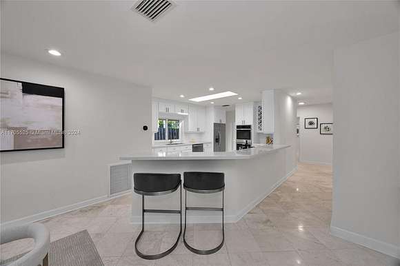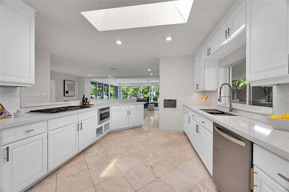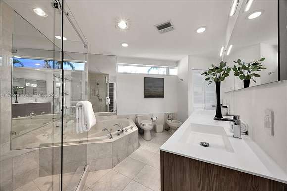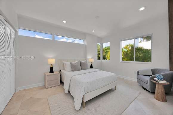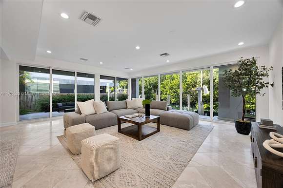 With no bridges to the Bay, this newly-renovated home on exclusive Rockerman Road is a boater's paradise w/ 6 BRs & 4.5 BAs spanning 3,517 SF on a 7,053 SF lot w/ 61' on the water. The open kitchen features new appliances & freshly-painted cabinets. The living & dining areas have lovely views of the water & Kennedy Park across the way. There are also 2 BRs w/ en-suite baths on the 1st floor, 1 of which could be the primary suite. The primary suite is located privately on the 3rd floor & includes 2 walk-in closets, BA w/ dual vanities, & separate tub & shower. The 4th level rooftop terrace enjoys gorgeous vistas! New roof, new impact glass windows & doors, new seawall & dock w/ lift, renovated BAs, easy bay access, all conveniently close to downtown Coconut Grove & downtown Miami!