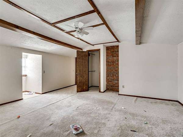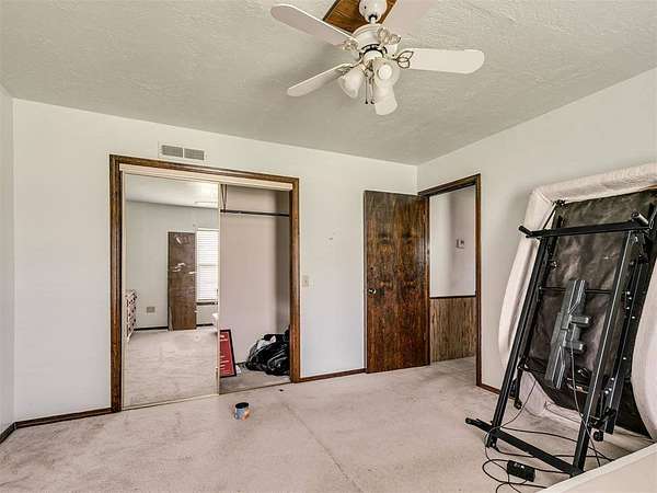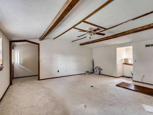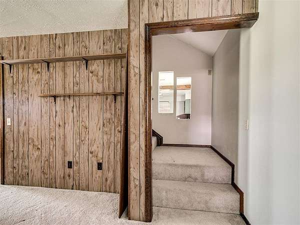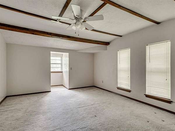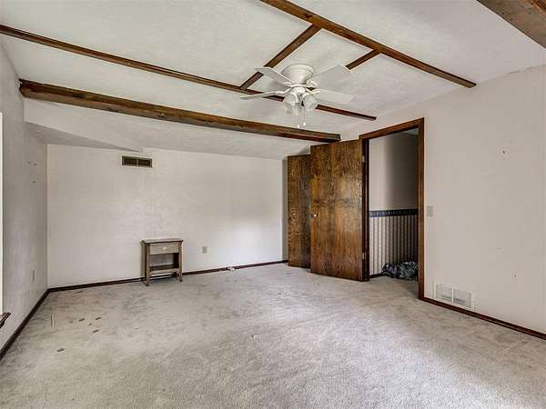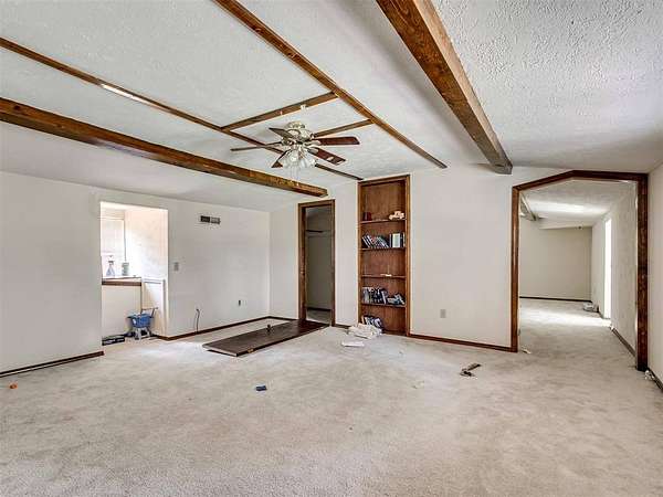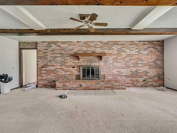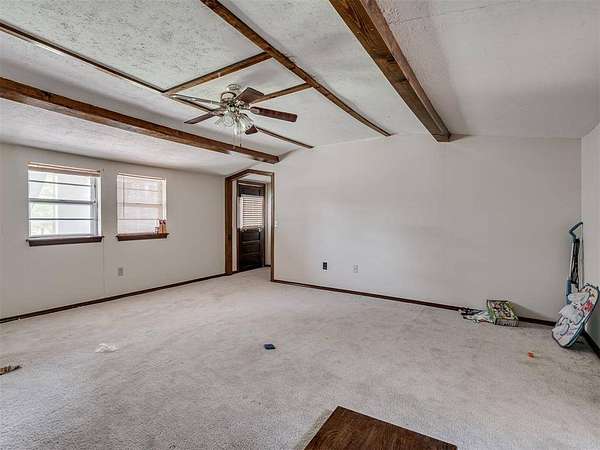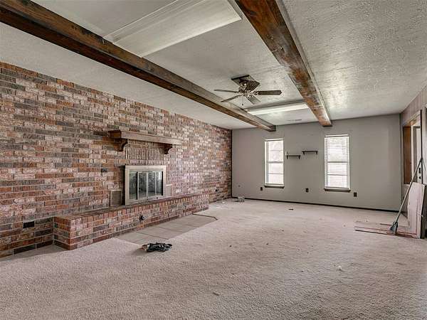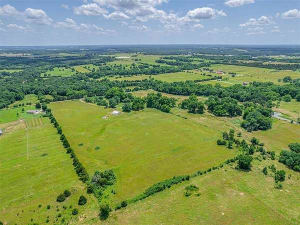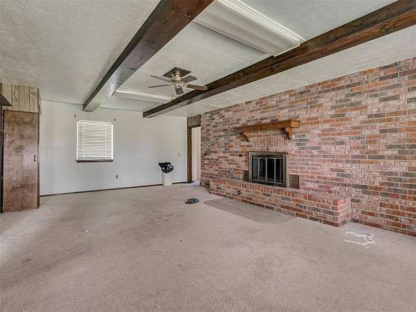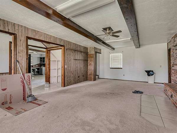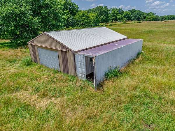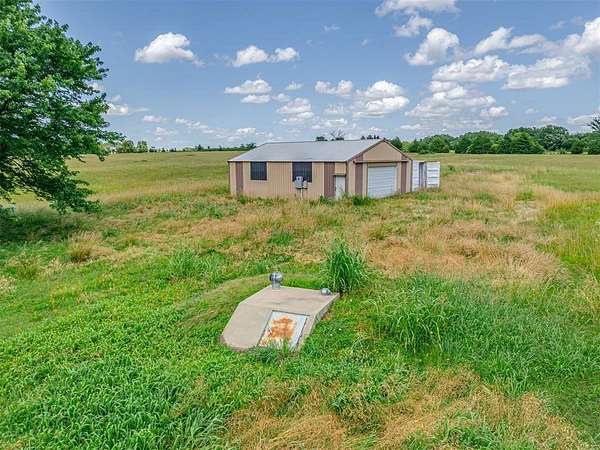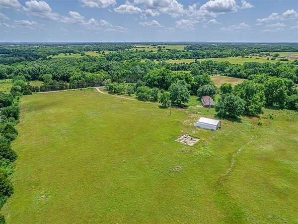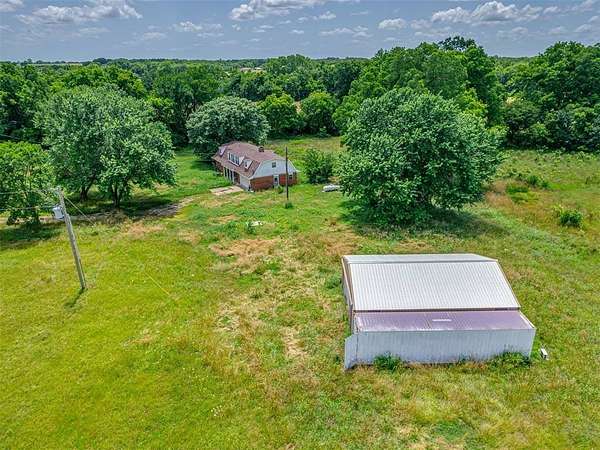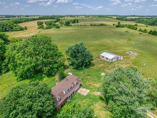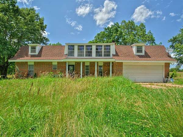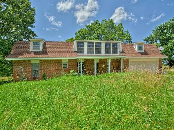 This home is a short sale. This four-bedroom, two-bath home sits on 20 acres with mature trees and wide open spaces. The two-story layout includes a cozy main living area with a wood-burning fireplace and wood beam accents. The kitchen is ready for your finishing touches and opens to the dining area and leads to a back patio, offering a great space for everyday living and entertaining. Downstairs features one bedroom, a full bathroom, and a separate laundry room with extra cabinet storage. Upstairs are three large bedrooms and a centrally located bathroom. A small sunroom across the front of the house provides peaceful views of the property. The roof was replaced in 2019. A 30x40 metal shop includes an electrical panel, a 14x8 motorized rolling door, and HVAC system. Additional features include a storm shelter, frost-free outdoor faucets, and hayfield. The home is set back from the road for added privacy. Located just off 99N, only nine minutes north of I-40 and seven minutes south of downtown Prague, shopping, and restaurants.