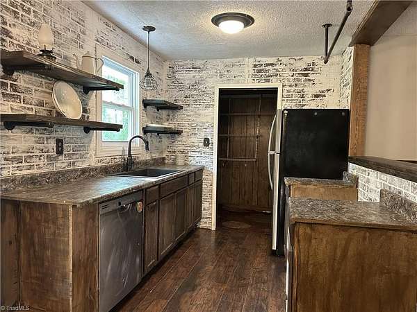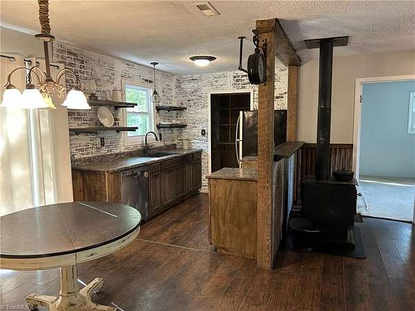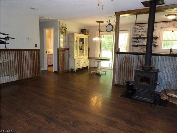 3-bedroom 2bath home on 3.96 acres, private road once known as Old Gold Mine Rd is searching for new owners to help with unfinished remodel. This house has been given many updates to the kitchen, dining room, living room and 2nd bedroom to enrich the farmhouse feel. This home is being sold AS IS with no repairs being done by owners. The following are some of the many updates: new kitchen cabinets, new flooring in kitchen living room and bedroom with sub floor in living room, metal roof in 2019, HVAC installed in 2021, well pump installed in 2024, septic pumped in 2023, woodstove installed in December of 2024, gutters in 2020 and new kitchen window. This property features a large building/shop last used for racing go-kart storage/ repair shop, greenhouse, chicken coop and lawnmower shed/ carport .