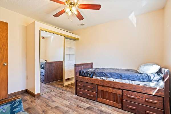 - Bedroom On 1 st Floor, Cathedral Ceiling(s), Ceiling Fan(s), Eat-In Kitchen, High Speed Internet, Kitchen Island, Pantry, Primary Downstairs, Solid Surface Counters, Walk-In Closet(s)
