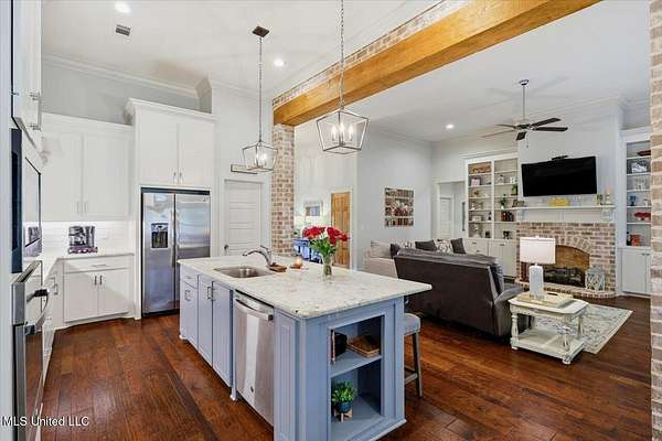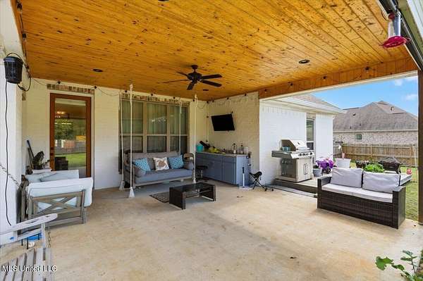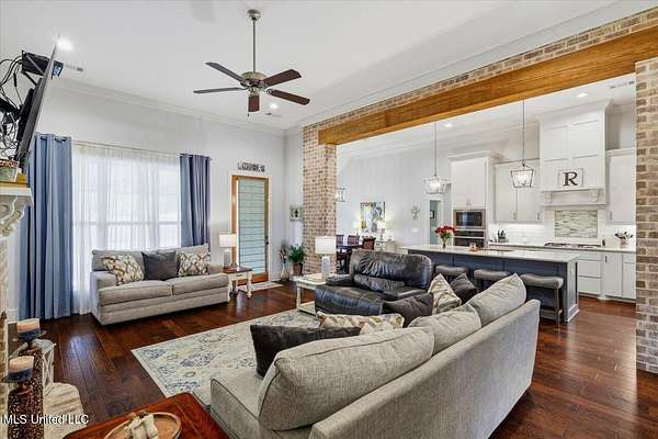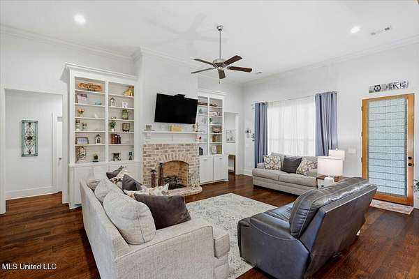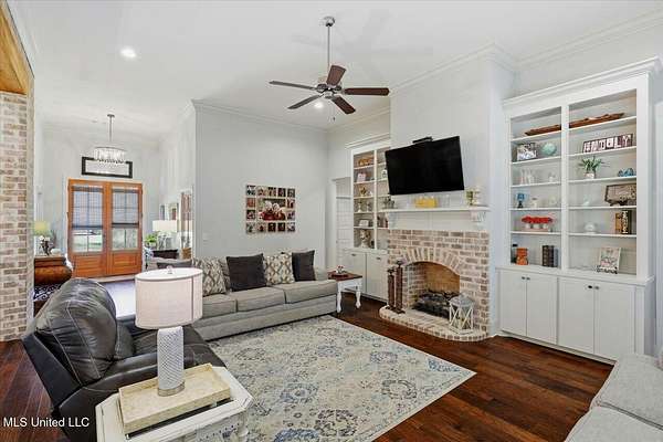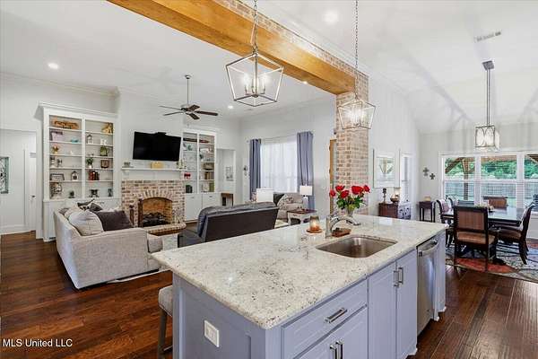 Welcome to this beautifully designed custom home in the sought-after Driftwood Estates community of Florence. This 4-bedroom, 2.5-bath home offers 2,706 square feet of thoughtfully planned living space that feels warm, inviting, and spacious. From the moment you step through the foyer entry, you'll notice the custom touches and attention to detail that make this home truly stand out. The living room is open and welcoming with tall ceilings, engineered wood flooring, a gorgeous fireplace with built-ins, and a brick and beam accent between the kitchen and living area that adds a stylish finishing touch. The kitchen is a dream with a large island, gas cooktop, built-in oven, walk-in pantry, and plenty of cabinet and countertop space. The dining area is perfectly sized for a large table and chairs, creating the ideal setup for gatherings. The private office includes custom built-ins, making it a comfortable and productive space for work or study. Each bedroom in the home is spacious with great closet space throughout. The primary suite is a relaxing retreat featuring a tray ceiling with tongue and groove pine, a luxurious bath with a freestanding tub, custom tiled shower with a rain showerhead, dual vanities, and a walk-in closet that connects directly to the laundry room for added convenience. Outdoor living is just as impressive. Enjoy the covered patio, additional patio area with a pergola, side deck, and outdoor kitchenette area perfect for cookouts or quiet evenings at home. The large fenced yard encloses just a portion of the beautiful 2.3-acre lot, giving you space to spread out while still feeling private and peaceful. Driftwood Estates is a quiet and desirable community where you can relax, unwind, and enjoy time with the people who matter most. If you've been searching for a home that blends comfort, craftsmanship, and style in a beautiful setting, this one has it all. Call your REALTOR today to schedule a private tour!
