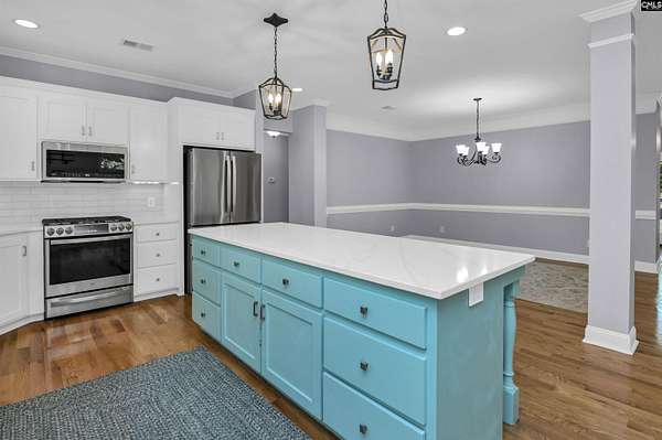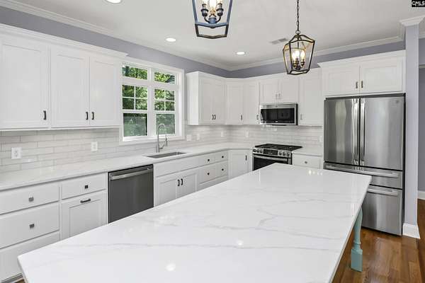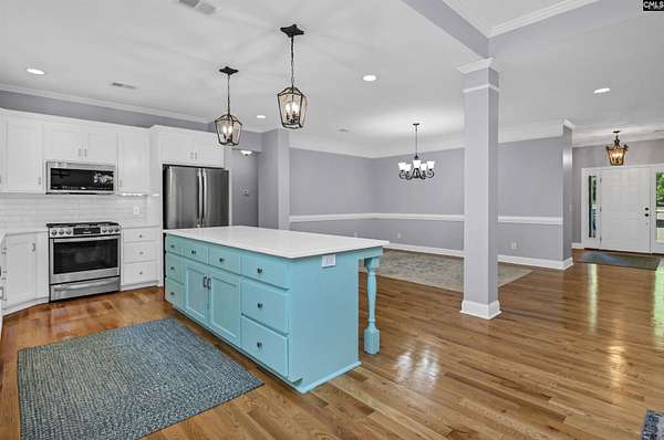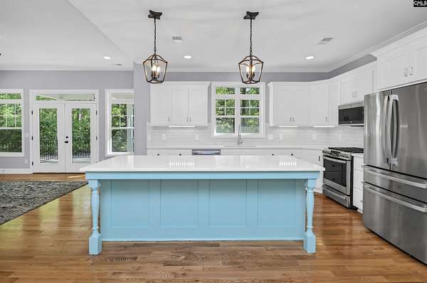 Two acres, room to breathe, and a home that was built to be lived in. From the moment you walk in, the open floor plan feels welcoming, with natural light pouring in and spaces that flow beautifully from one room to the next. The kitchen is the heart of the home, featuring abundant cabinetry, a stylish backsplash, under cabinet lighting, stainless appliances, a gas stove, and a large island that opens to the spacious dining room and great room. Built-in bookshelves, a fireplace, and picture windows make the great room feel both inviting and memorable. The primary suite creates a peaceful escape with new hardwood floors, a spa-inspired bath, and a walk-in closet built for real life. Two additional bedrooms with new hardwood floors, a bonus room, a home office, and a separate laundry room with a dedicated space for the fur babies add flexibility and function. Enjoy mornings on the covered front porch and unwind in the evenings on the covered back patio surrounded by privacy and a serene setting. Convenient to Columbia and Orangeburg, you’ll enjoy the charm of country living with easy access to dining, shopping, and more. Disclaimer: CMLS has not reviewed and, therefore, does not endorse vendors who may appear in listings.